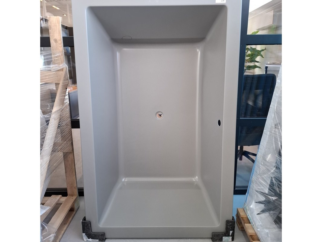 Merk: Xenz Product: Ligbad Kleur: mat cement Materiaal: acryl Afmeting: 190x120x50cm