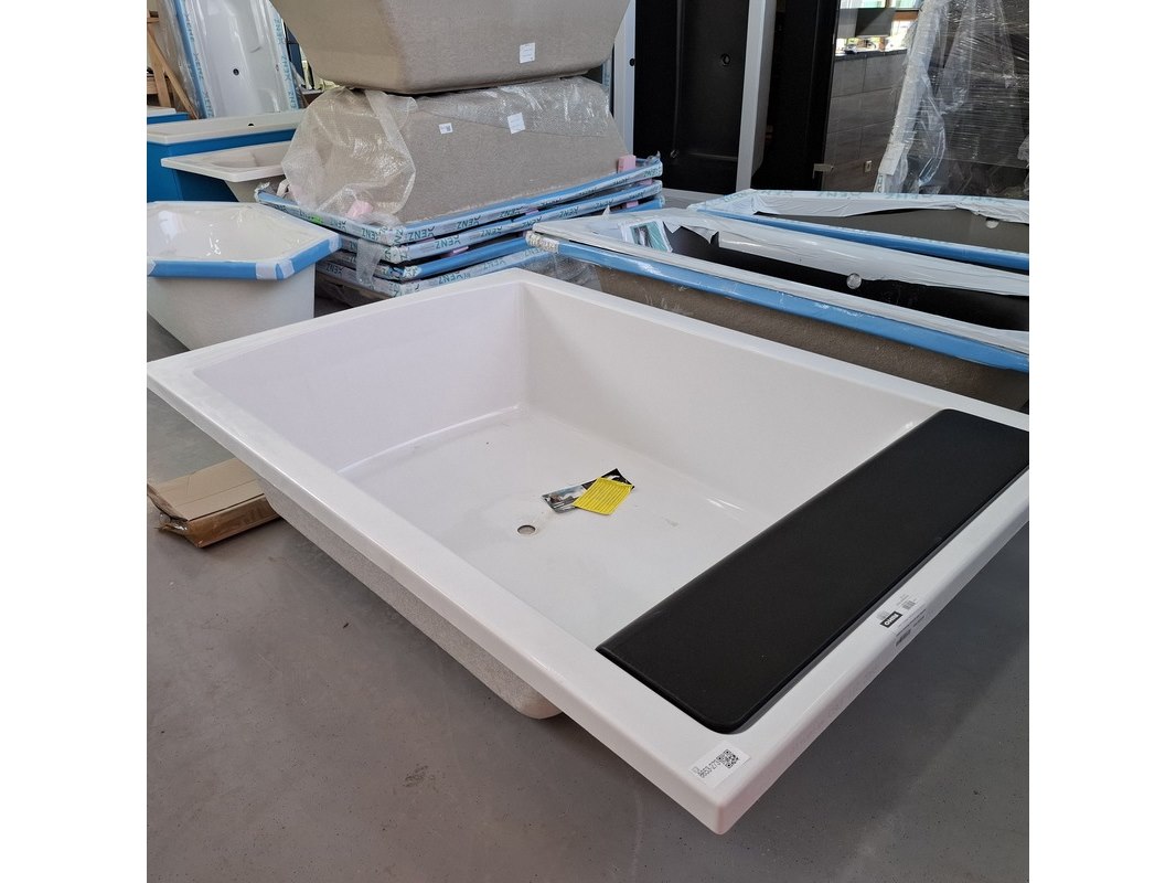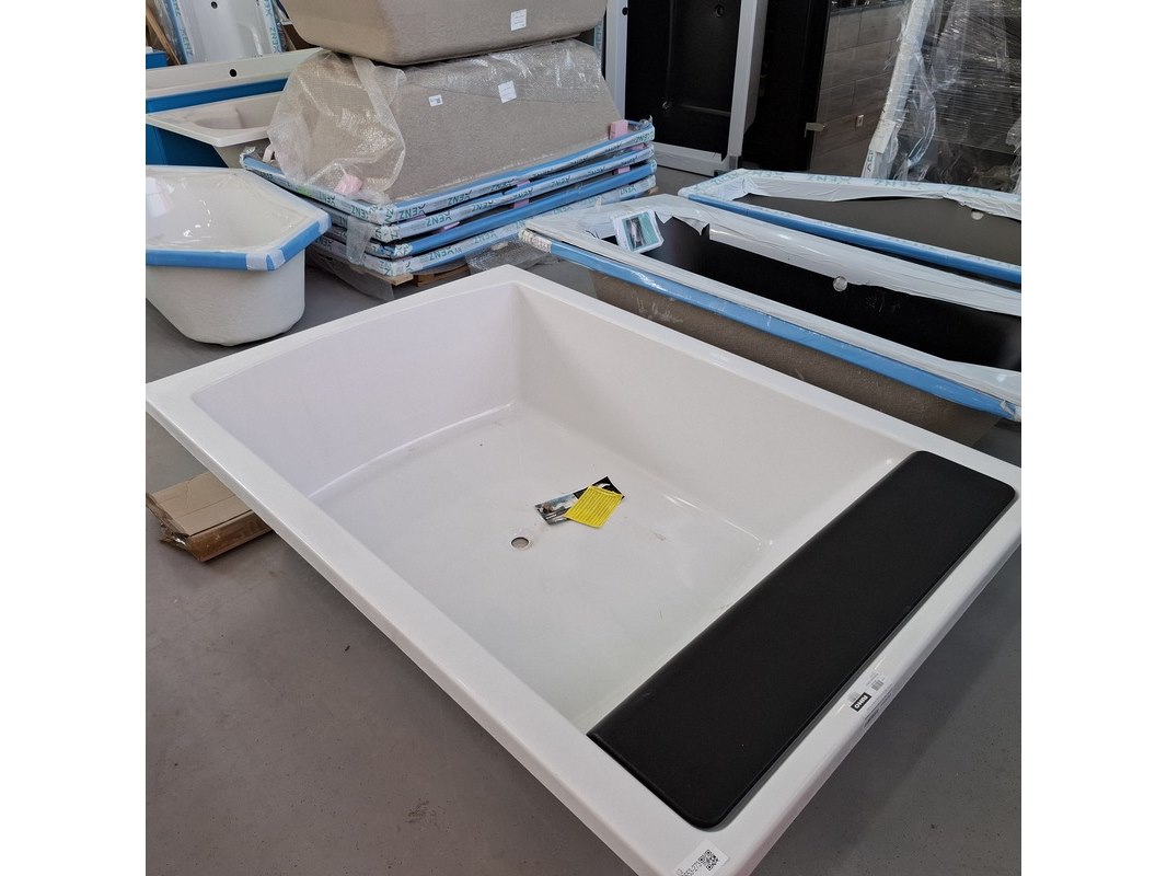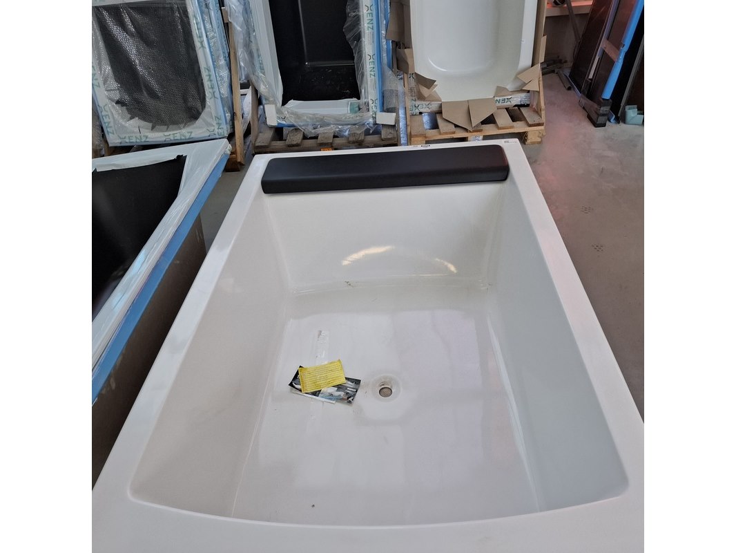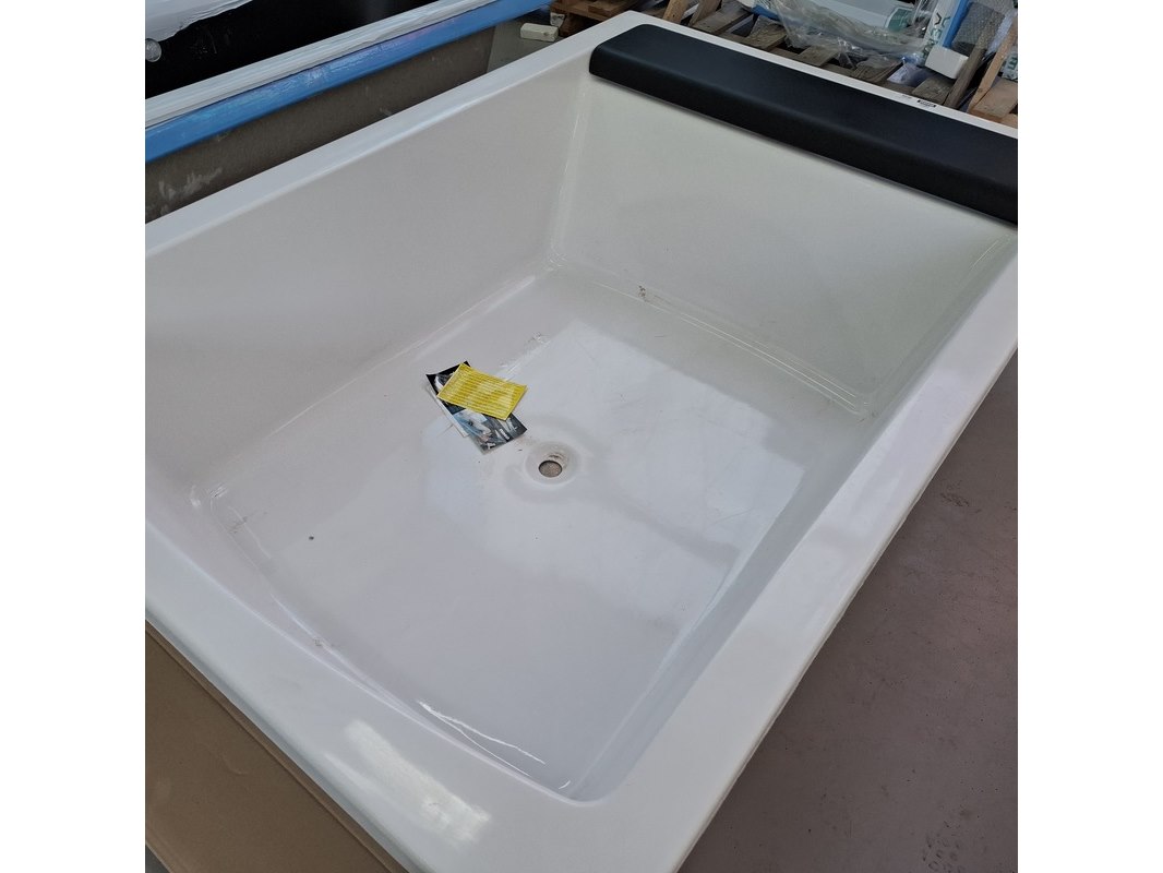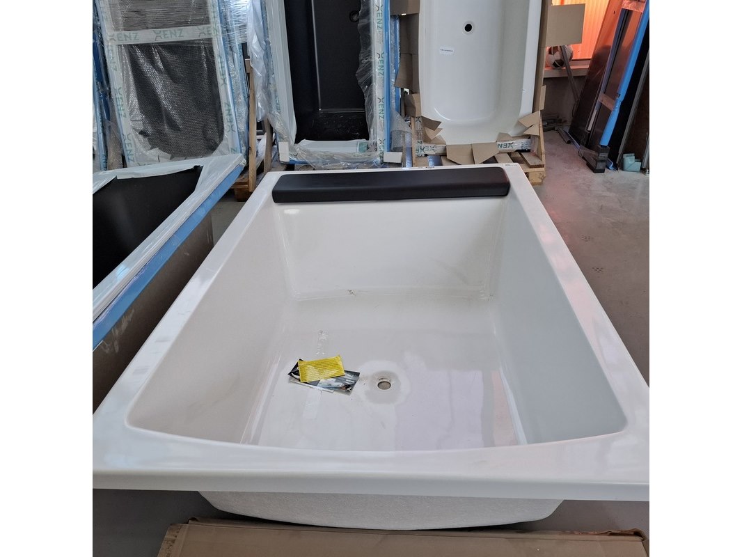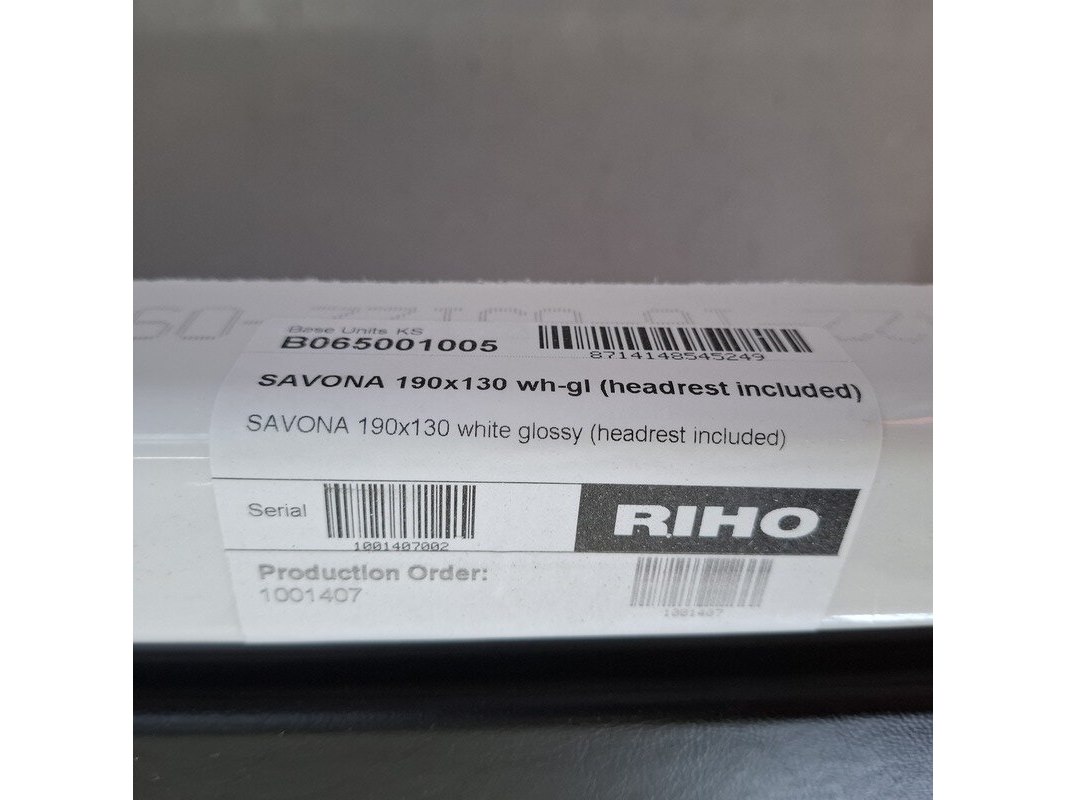 Merk: Riho Product: Ligbad Kleur: glans wit Materiaal: acryl Afmeting: 190x130cm Specificaties: incl. 2 badkussens