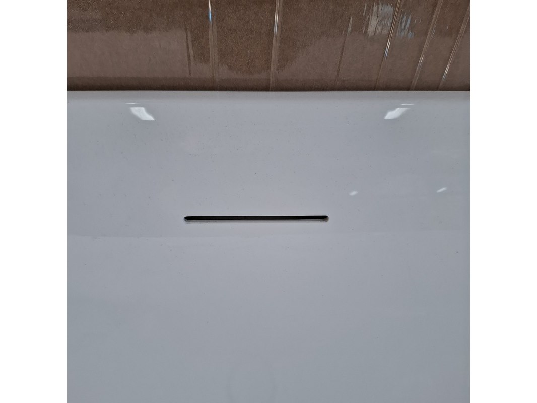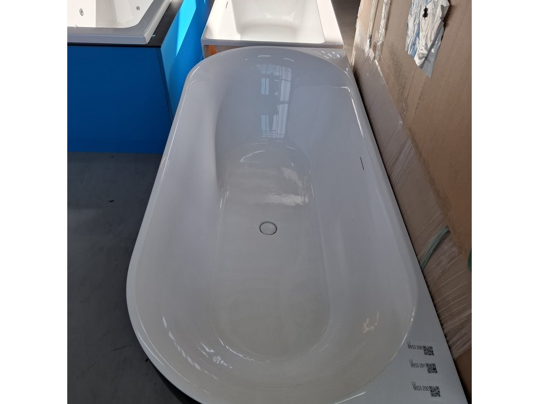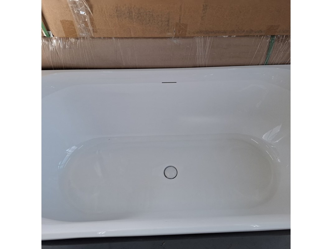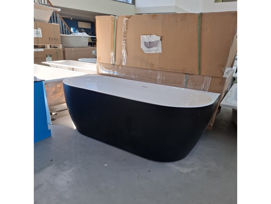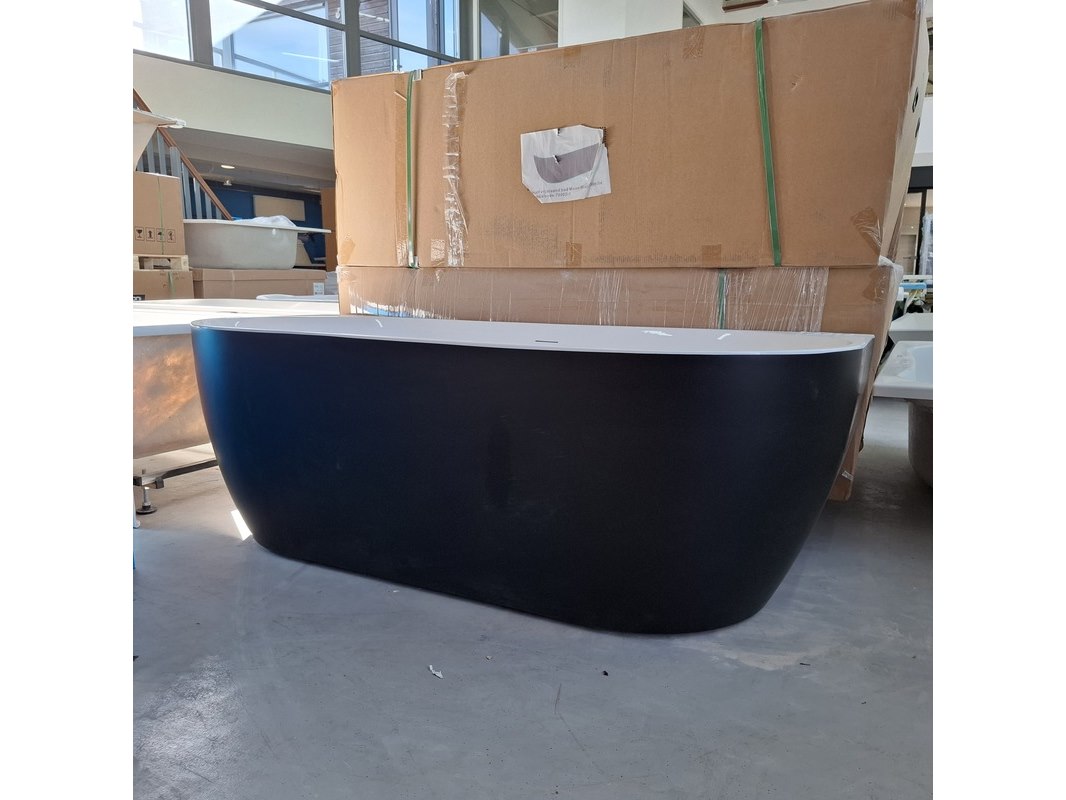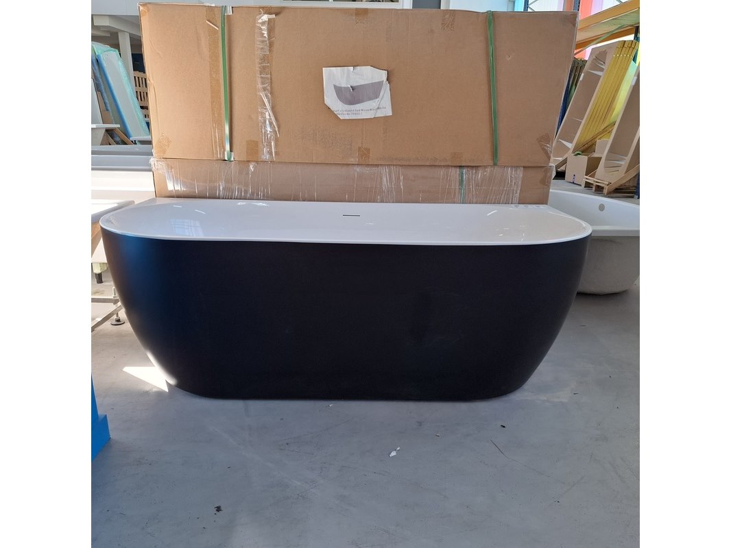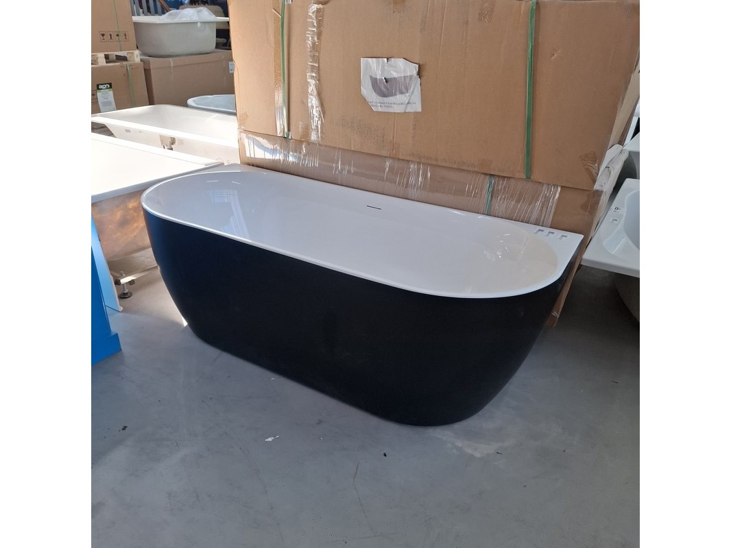 Merk: SANILUX Product: Half-vrijstaand ligbad (2 x ronde hoek) Kleur: moon/black Materiaal: acryl Afmeting: 180x80x60cm Specificaties: kleur: binnenkant glans wit, buitenkant mat zwart, incl. overloopcombinatie, incl. potenset