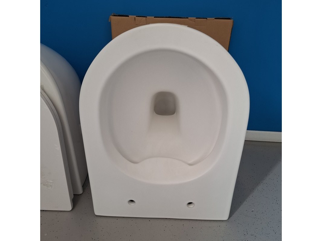 Merk: BESTDESIGN Product: Wandcloset Kleur: mat zwart Materiaal: keramiek Specificaties: RIMFREE, incl. zitting/deksel met softclose en quick release
