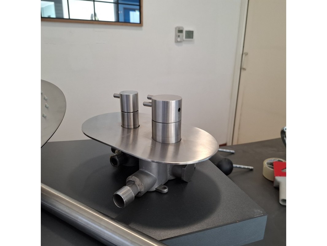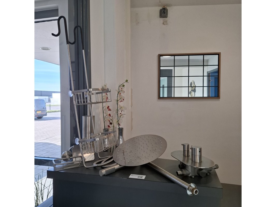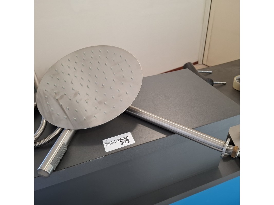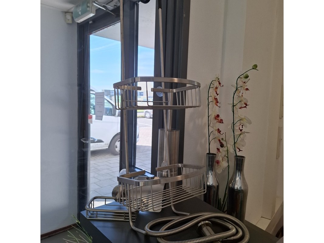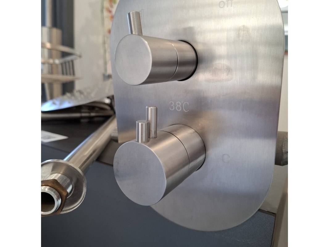 Product: Regendoucheset Kleur: rvs geborsteld Specificaties: set: 1x thermostaatkraan, 1x regendouche, 300mm, 1x douchearm, 400mm, 1x handdouche, 1x handdouchehouder, doucheslang, 1xdoucherek, 1x zeephouder, 1x toiletrolhouder, 1x wc borstel
