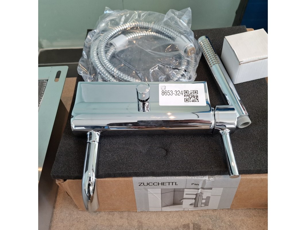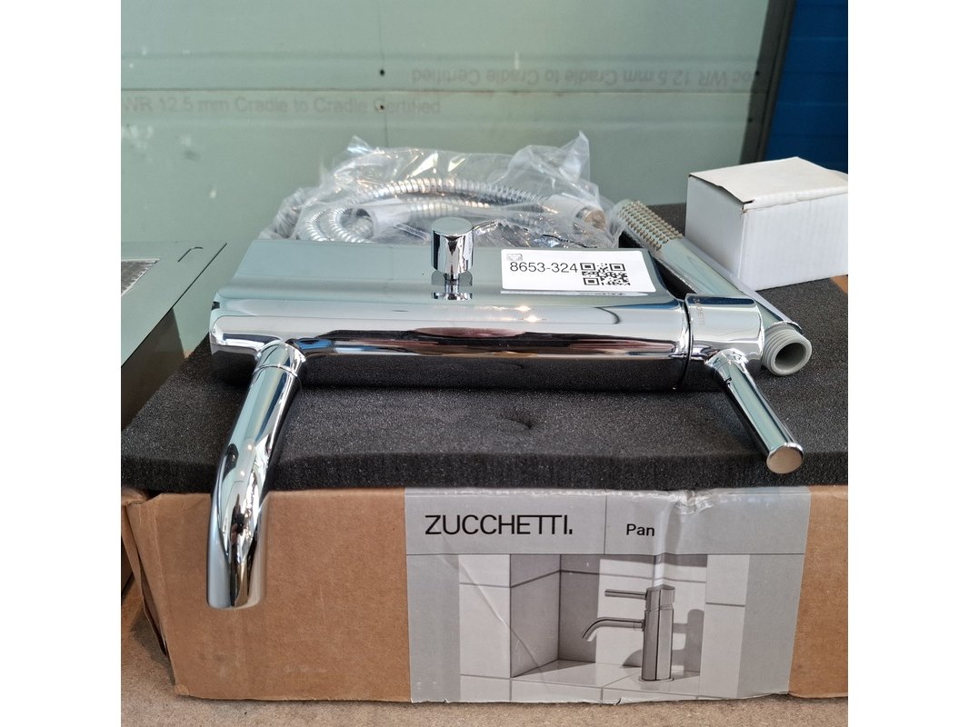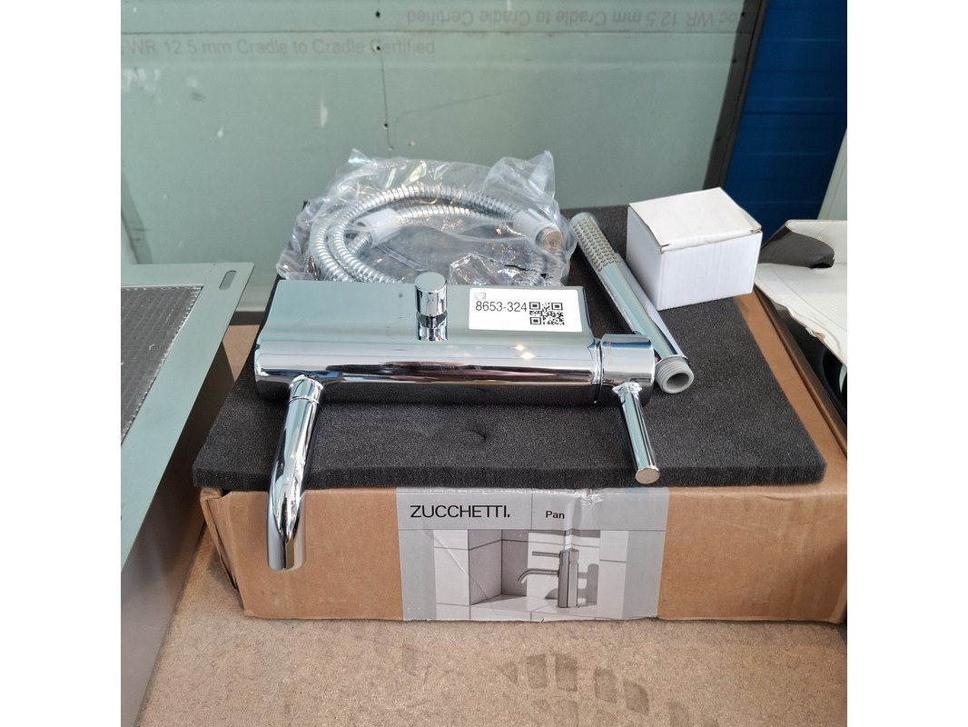 Merk: Zucchetti Product: Badkraan Kleur: chroom Afmeting: HOH=150mm Specificaties: incl. handdoucheset