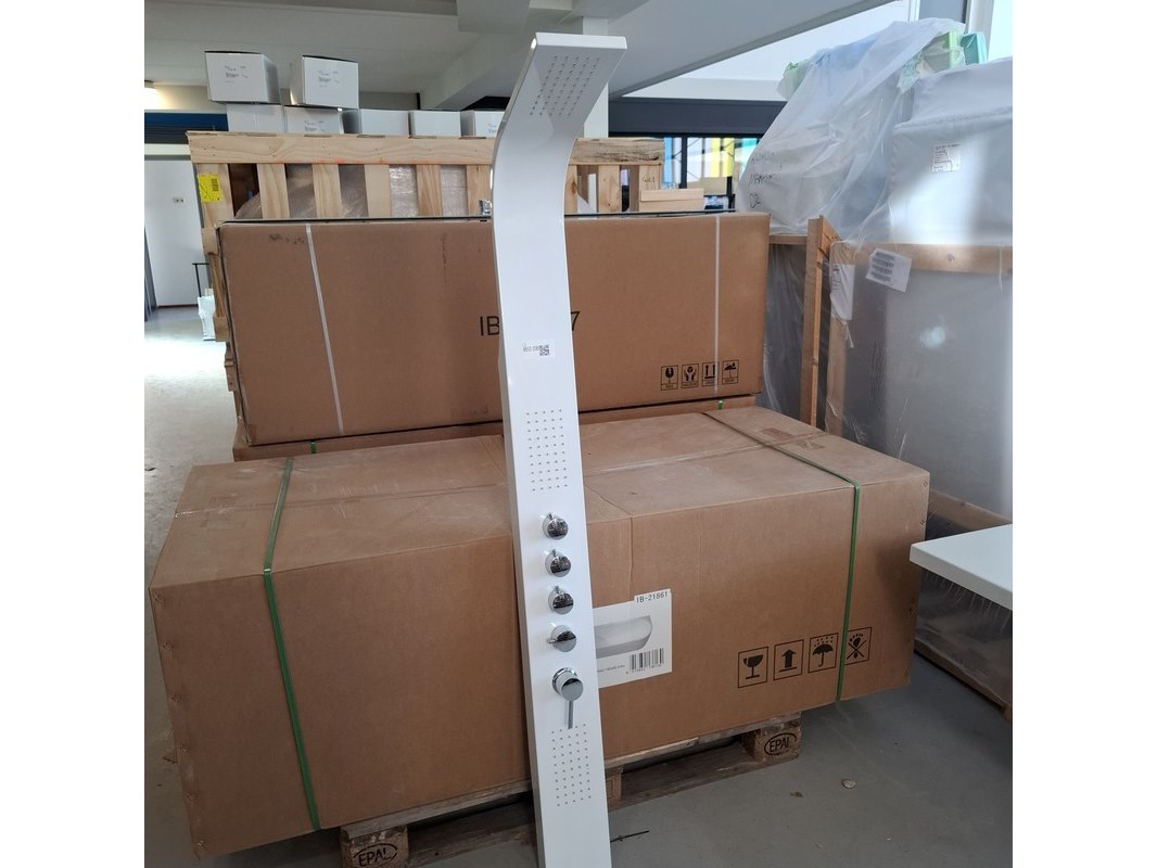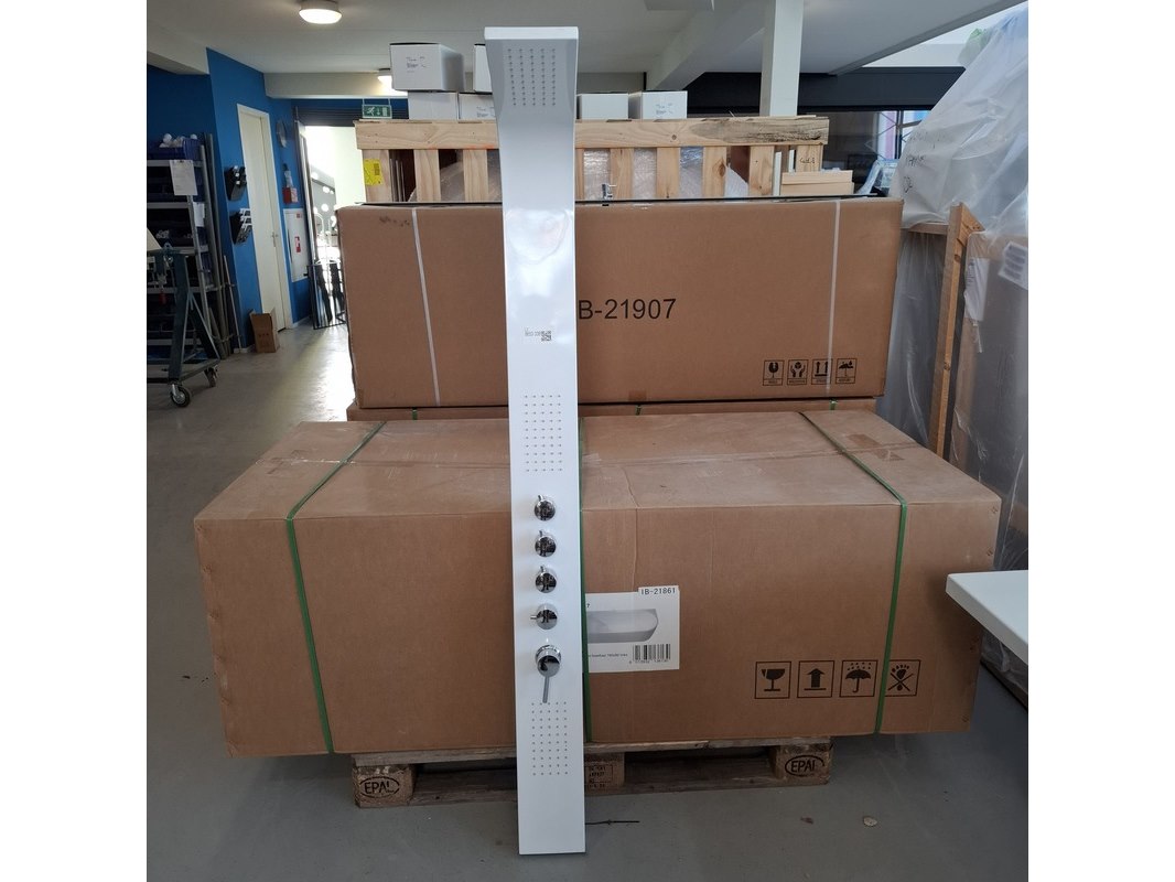 Merk: BESTDESIGN Product: Douchezuil Kleur: glans wit/chroom Specificaties: 1x regendouche, 2x body-douche, 1x handdouche, 1x mengkraan