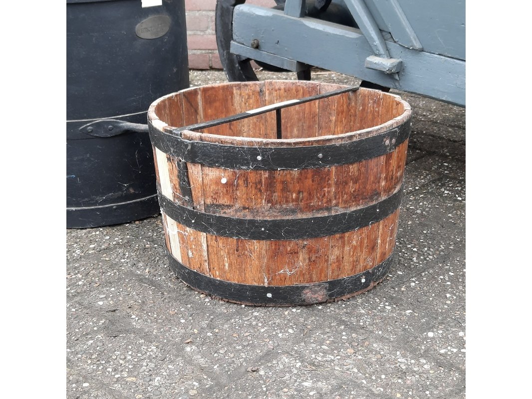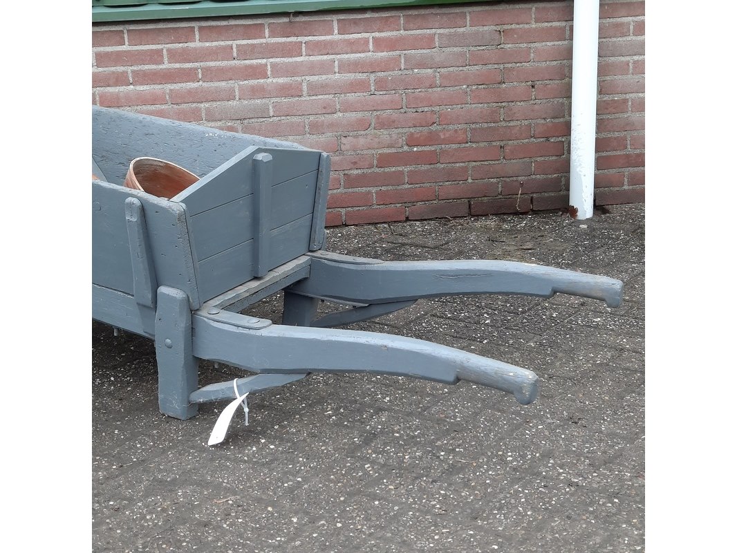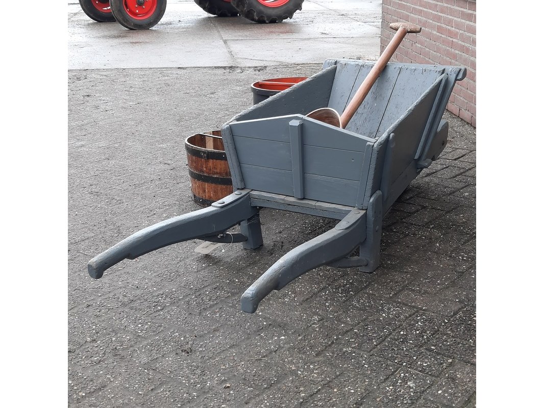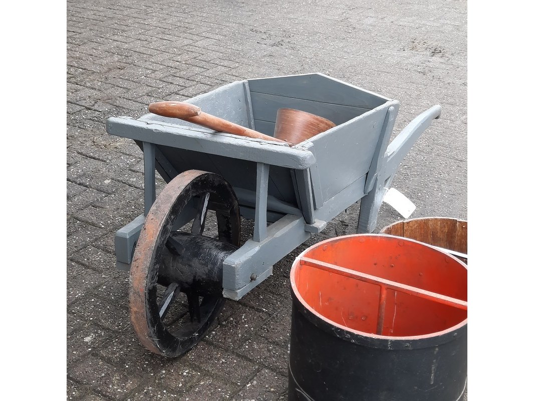 Product: Nostalgische kruiwagen Materiaal: hout Specificaties: incl. 1/2muds vat en hectolitervat