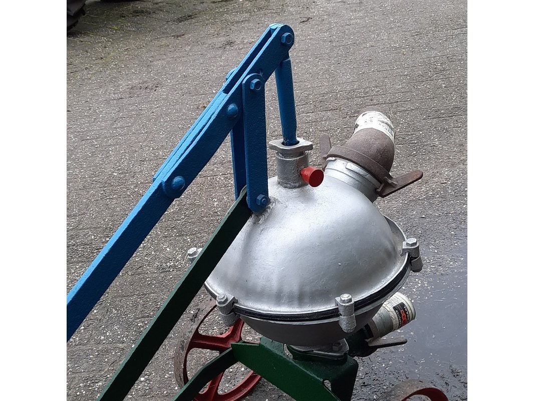 Product: Nostalgische mestpomp, handbediend Materiaal: metaal