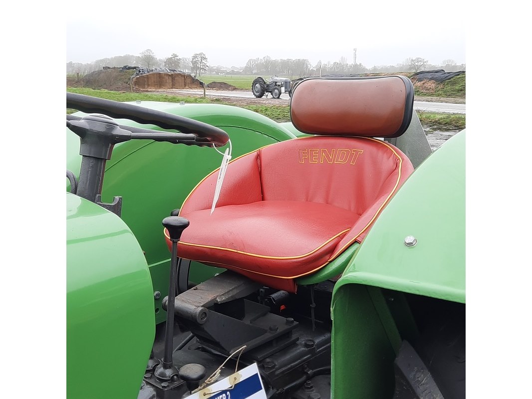 Merk: Fendt Product: Oldtimer tractor BouwJaar: 1966 Specificaties: Kenteken: TRS-59-J, afgelezen urenstand 5668 Motor: 3-cilinder, 34pk, watergekoelde diesel, 2010cc Transmissie: 8 versnellingen vooruit, 4 achteruit