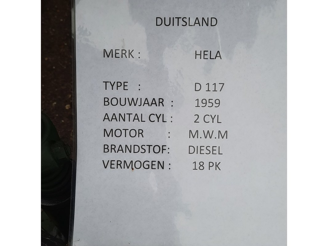 Merk: Herman Lanz, Hela Product: Oldtimer tractor BouwJaar: 1951 Specificaties: Kenteken: TRS-50-K Motor: M.W.M. diesel 2-cilinder, 18pk