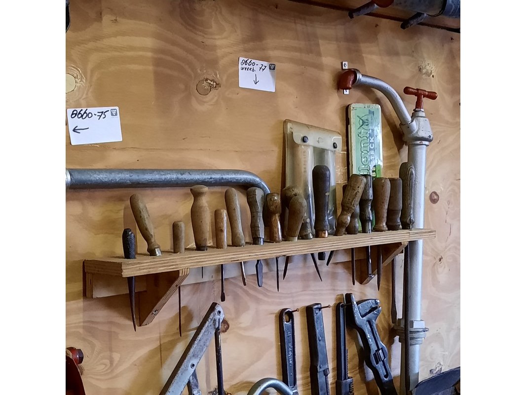 Werkbank met diverse nostalgisch gereedschap