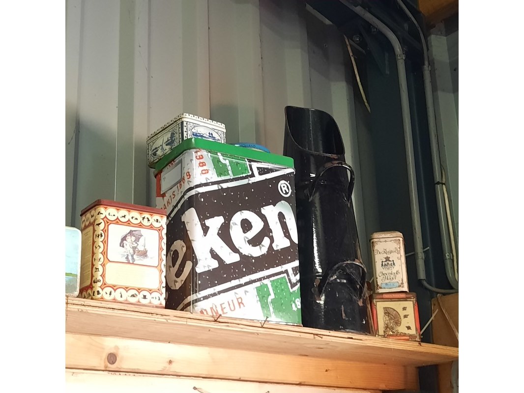 Product: Diverse nostalgische items o.a. Singer Specificaties: incl. nostalgisch decoratiemateriaal o.a. zagen, klok, etc.