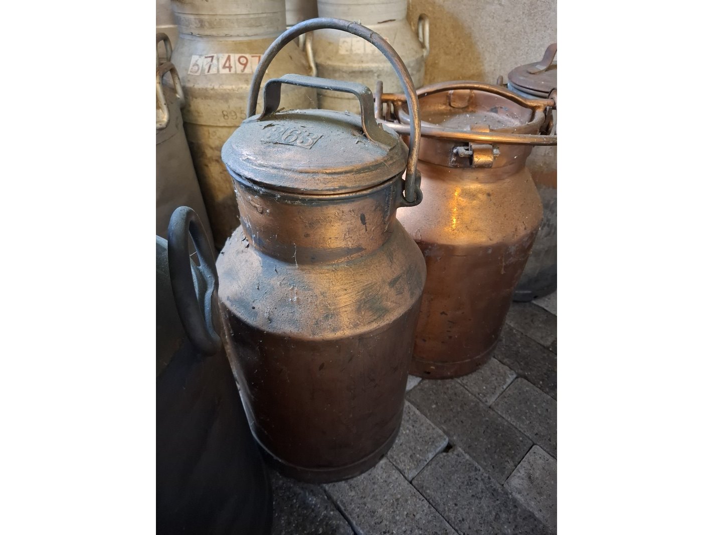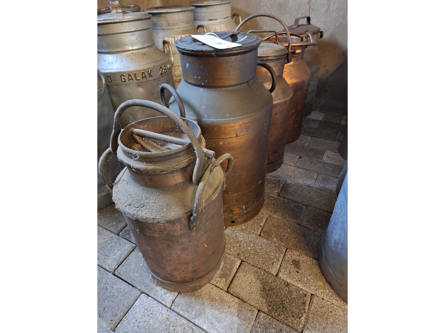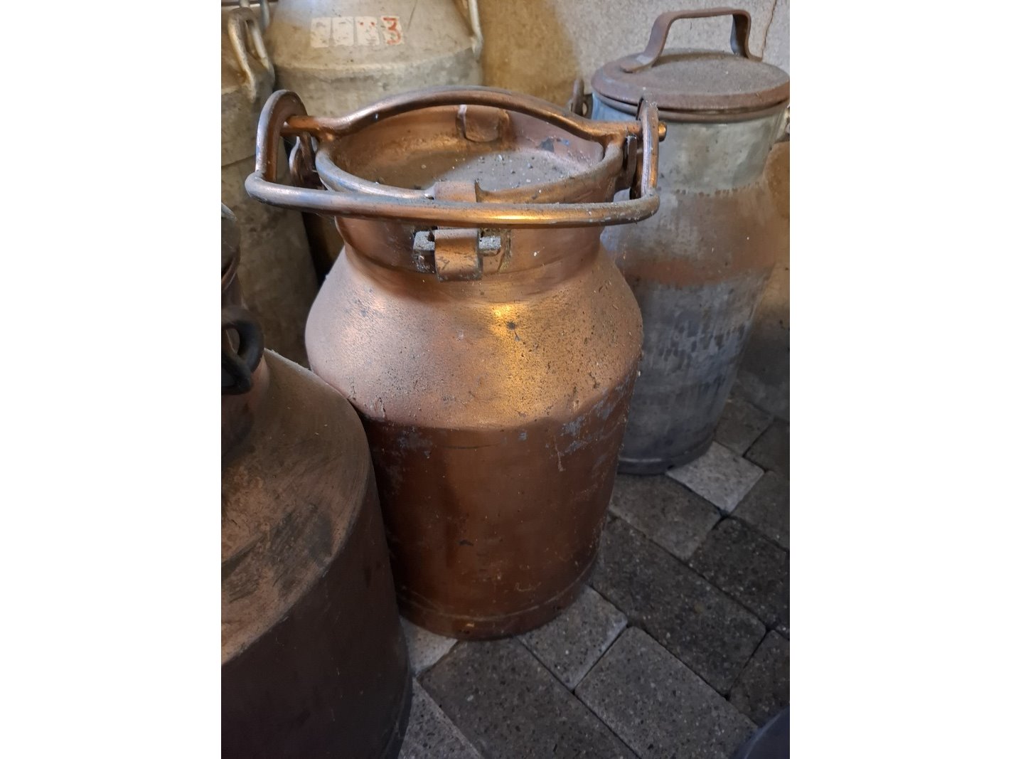 5x diverse koperen melkbussen