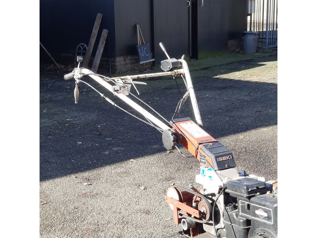 Merk: Iseki Product: Borstelmachine Afmeting: werkbreedte ca 115cm Specificaties: v.z.v. B&S 5pk benzinemotor