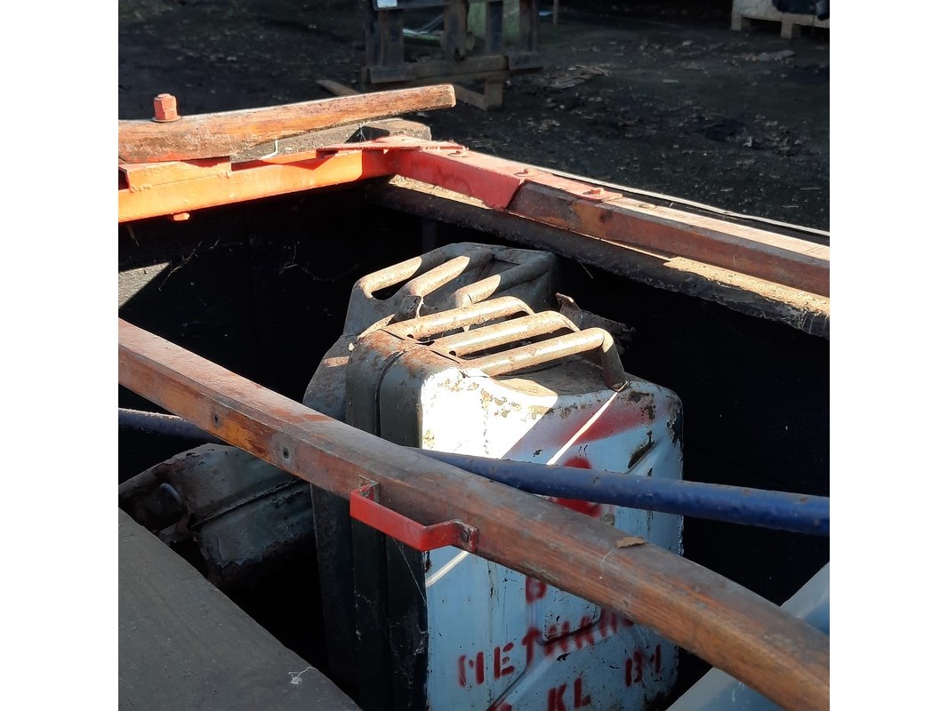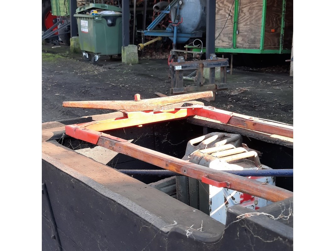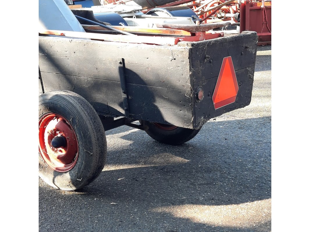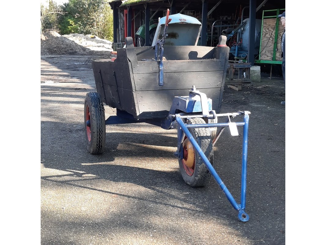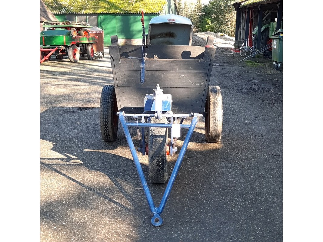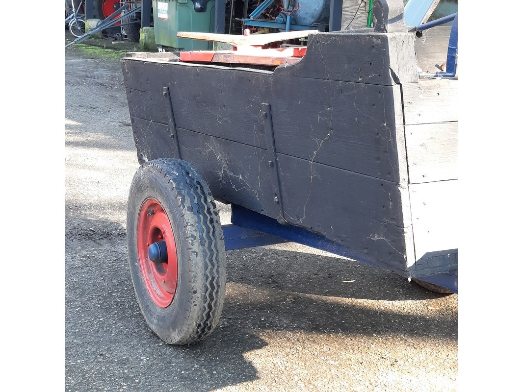 Product: Nostalgische mestwagen Afmeting: totale lxbxh ca 282x160x110cm Specificaties: incl. inhoud o.a. motorkap Ferguson TEF, etc.