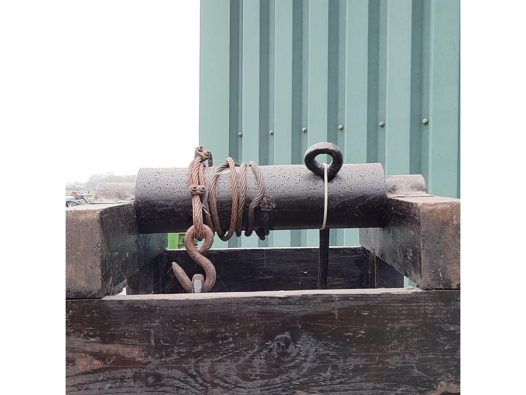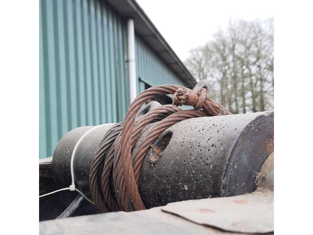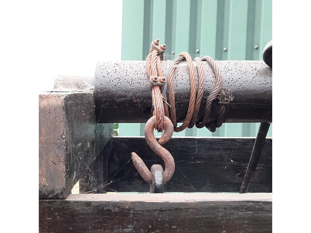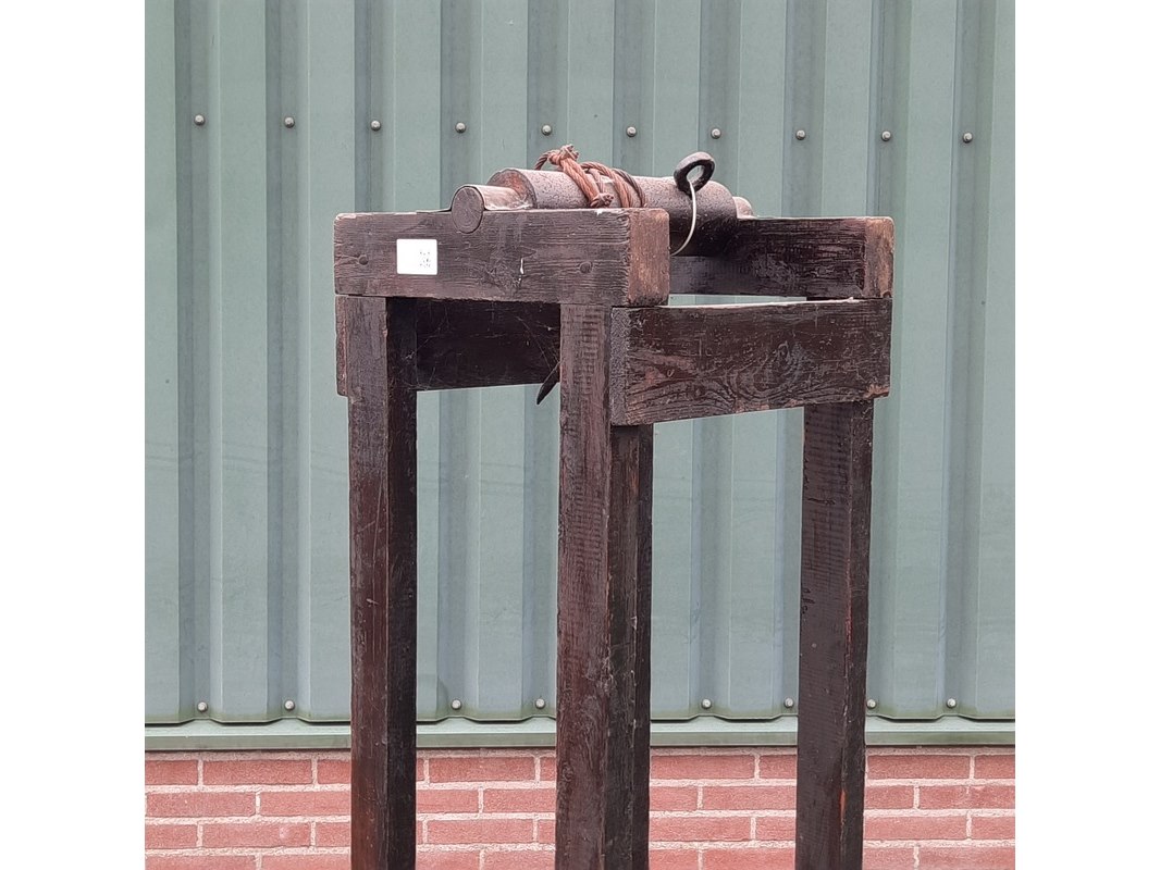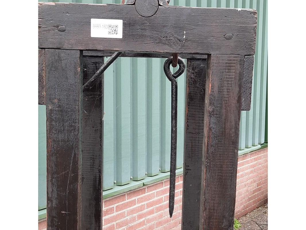Product: Nostalgische veeverlosapparaat Materiaal: hout Afmeting: afm. ca 172x50x50cm