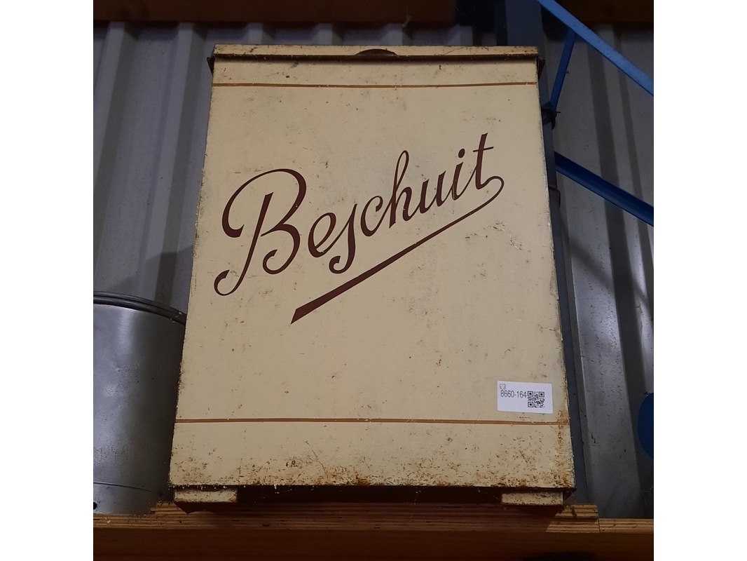 Product: Nostalgische beschuit bewaarblik Afmeting: hxbxd ca 72x51x51cm