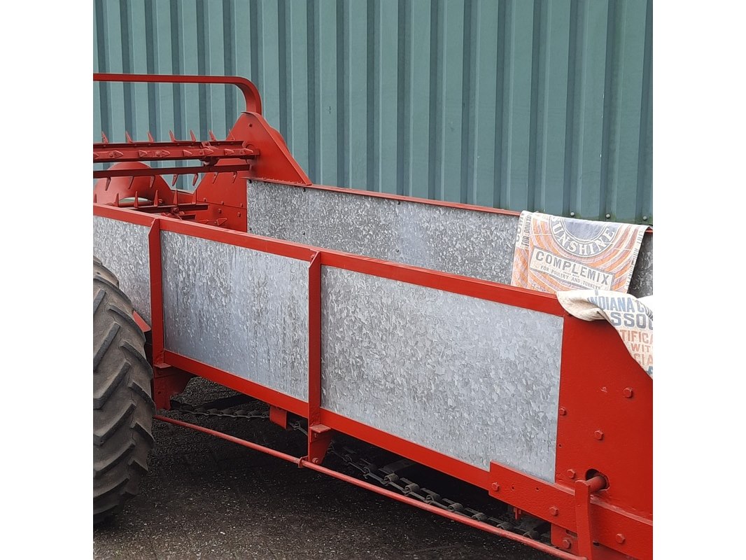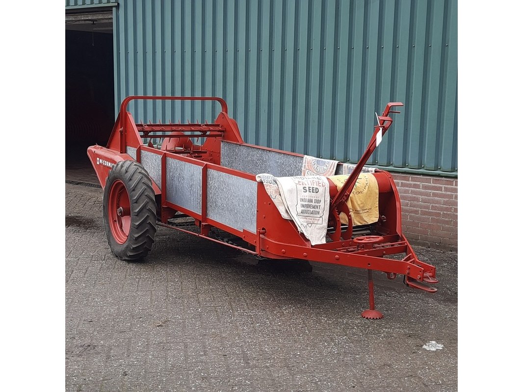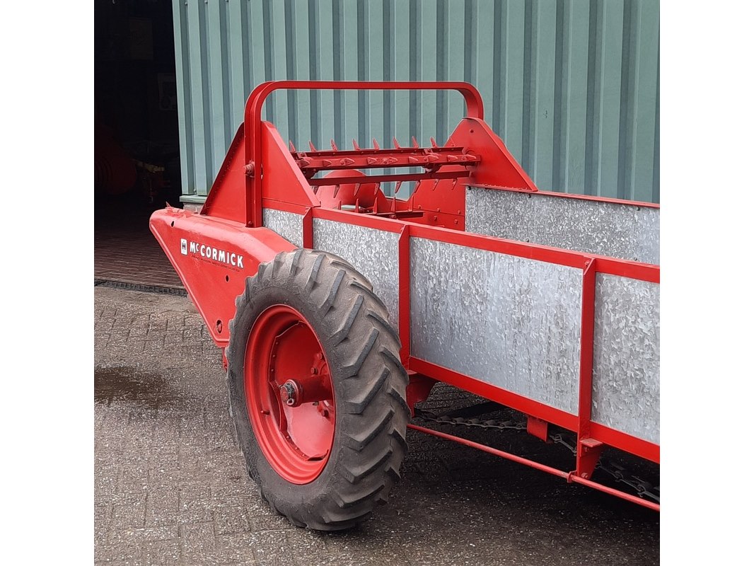 Merk: Mc Cormick Product: Mestverspreider Afmeting: totale afm. ca 460x187x140cm Specificaties: wiel aangedreven
