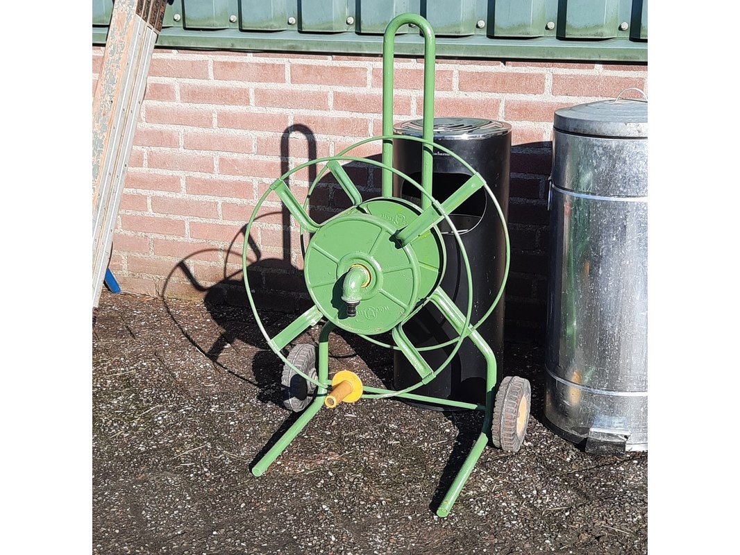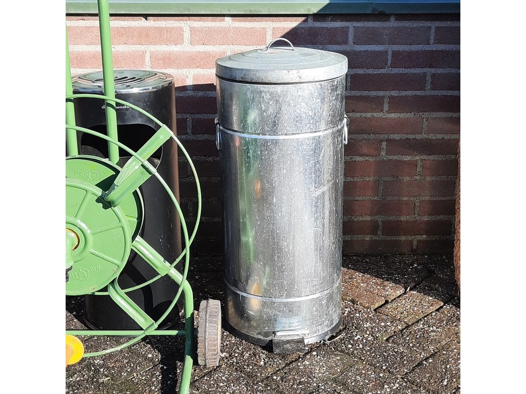 Product: Nostalgische slangenhaspel, pedaalemmer en asbak