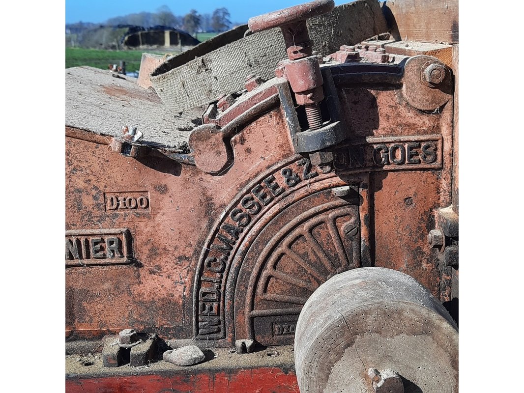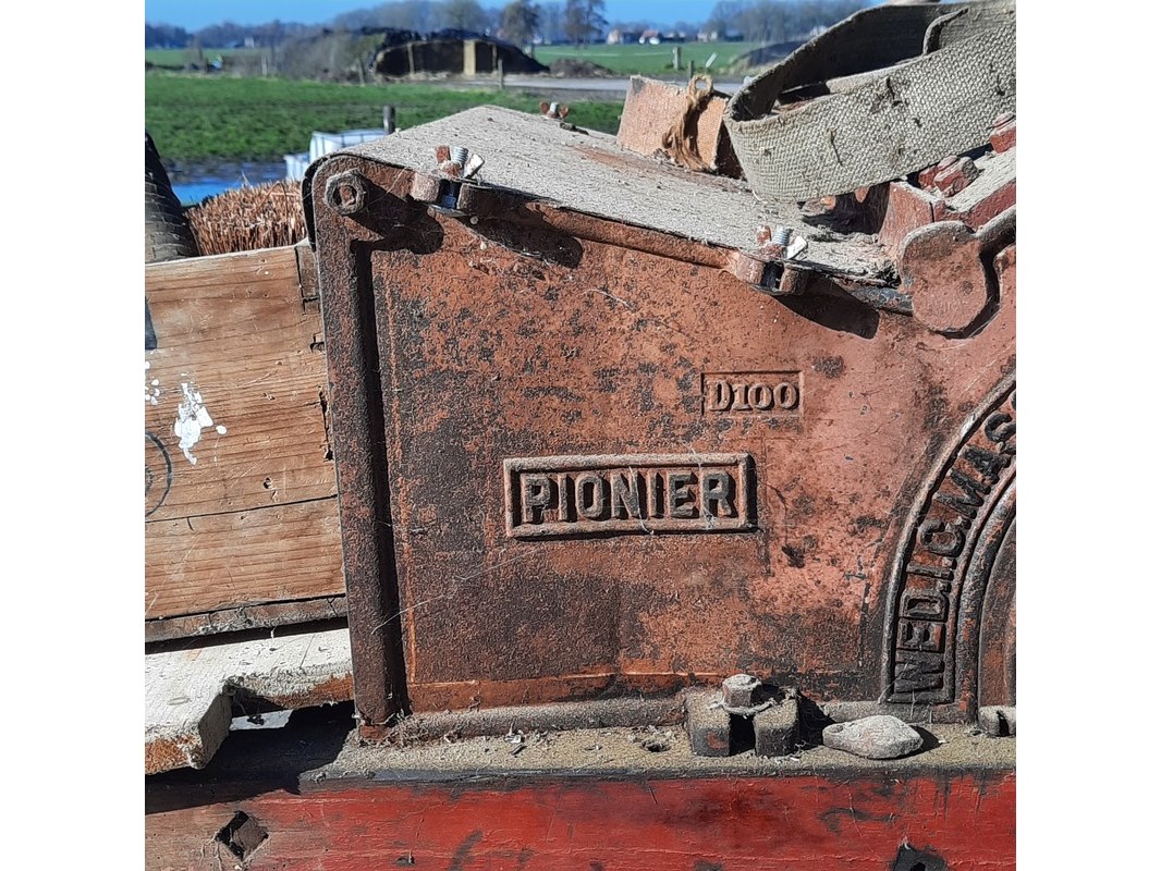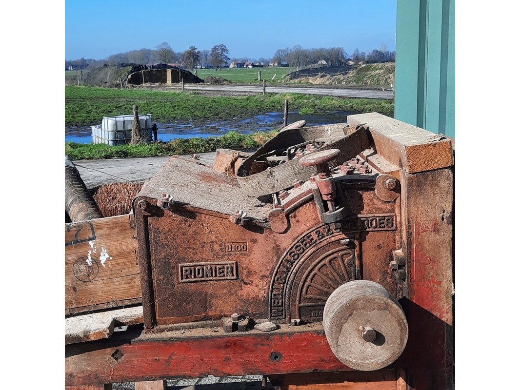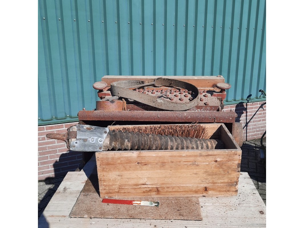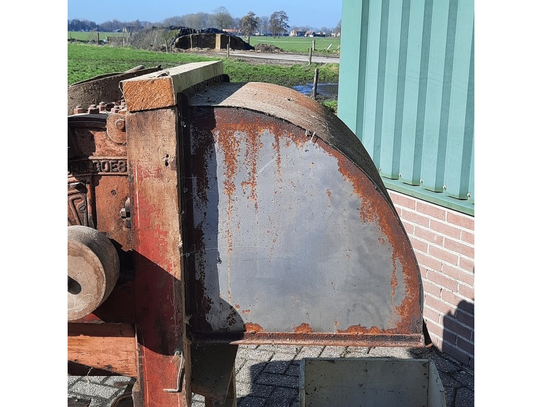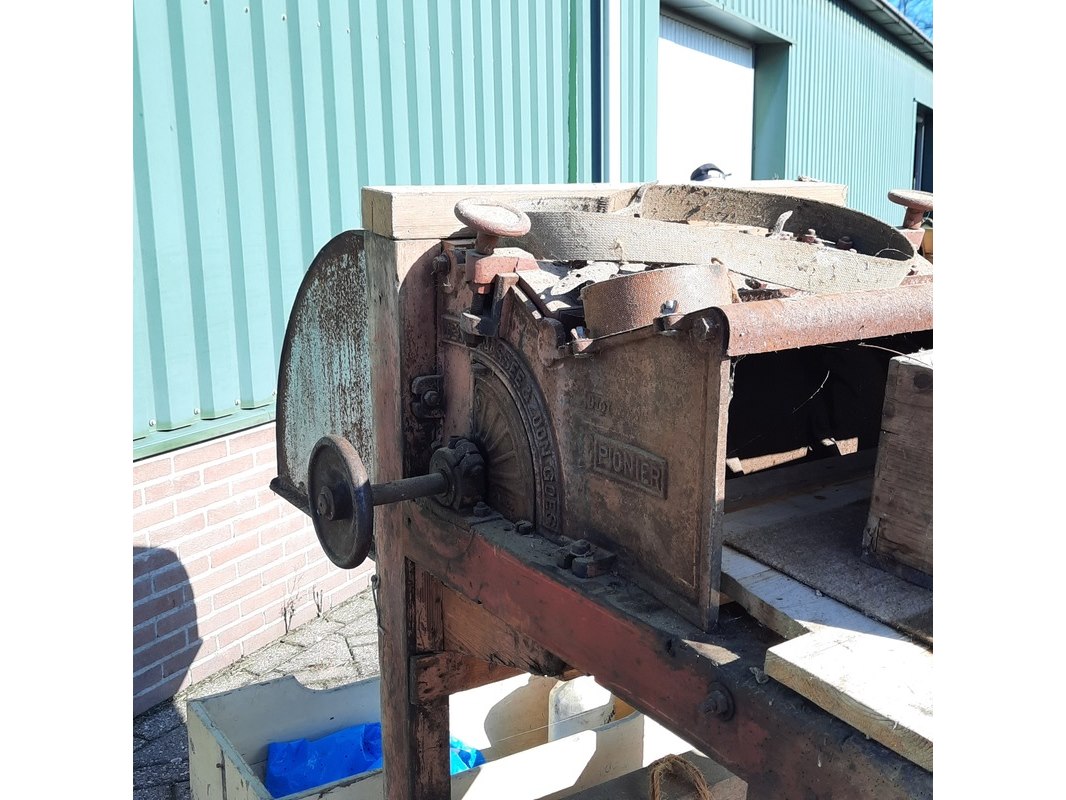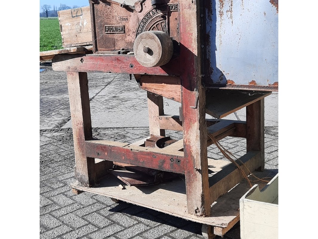 Merk: Pionier Product: Nostalgische wanmolen Afmeting: lxbxh ca 154x110x125cm Specificaties: riem aangedreven