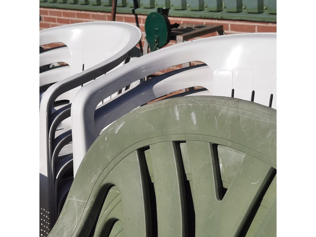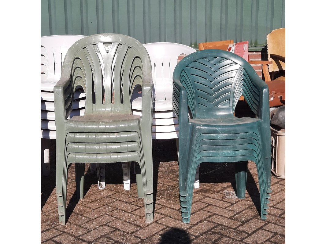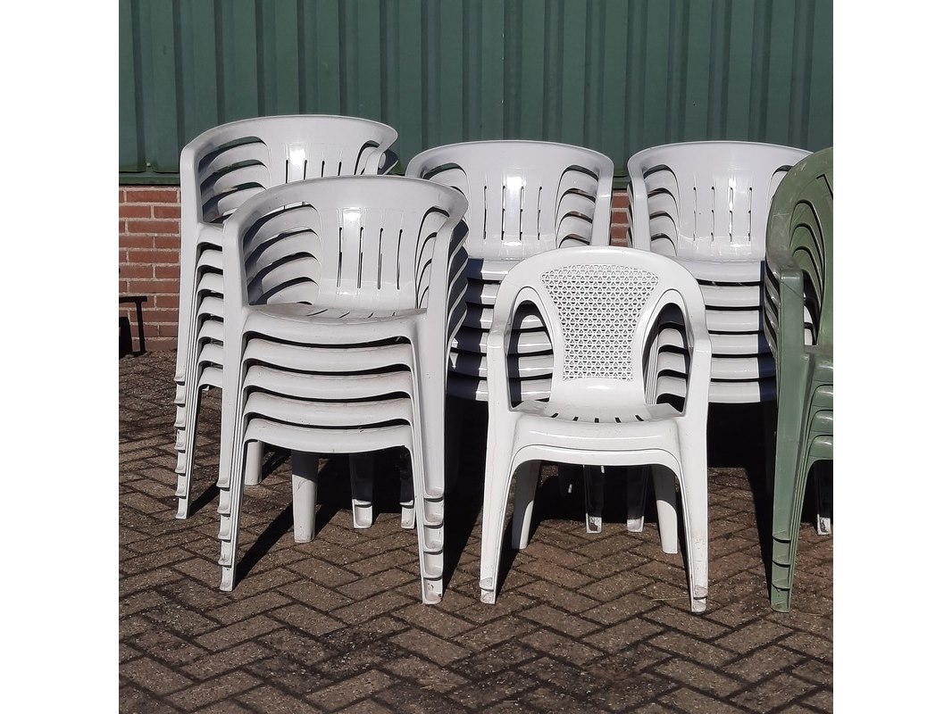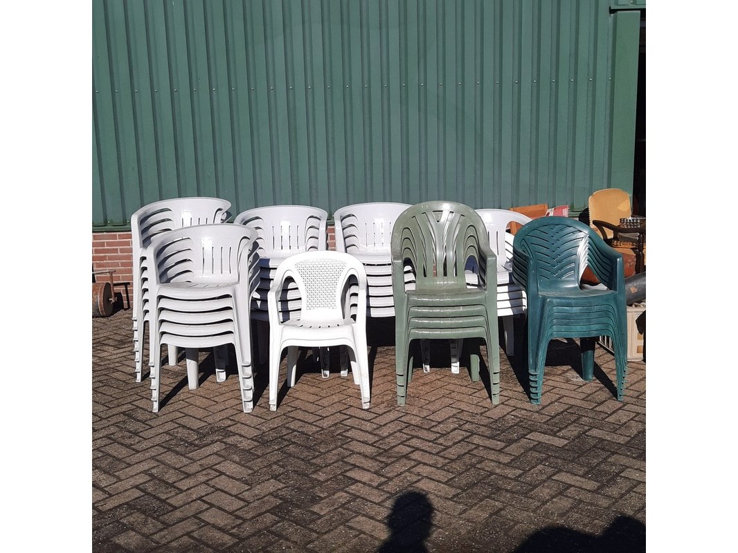 Product: Partij tuinstoelen Materiaal: kunststof
