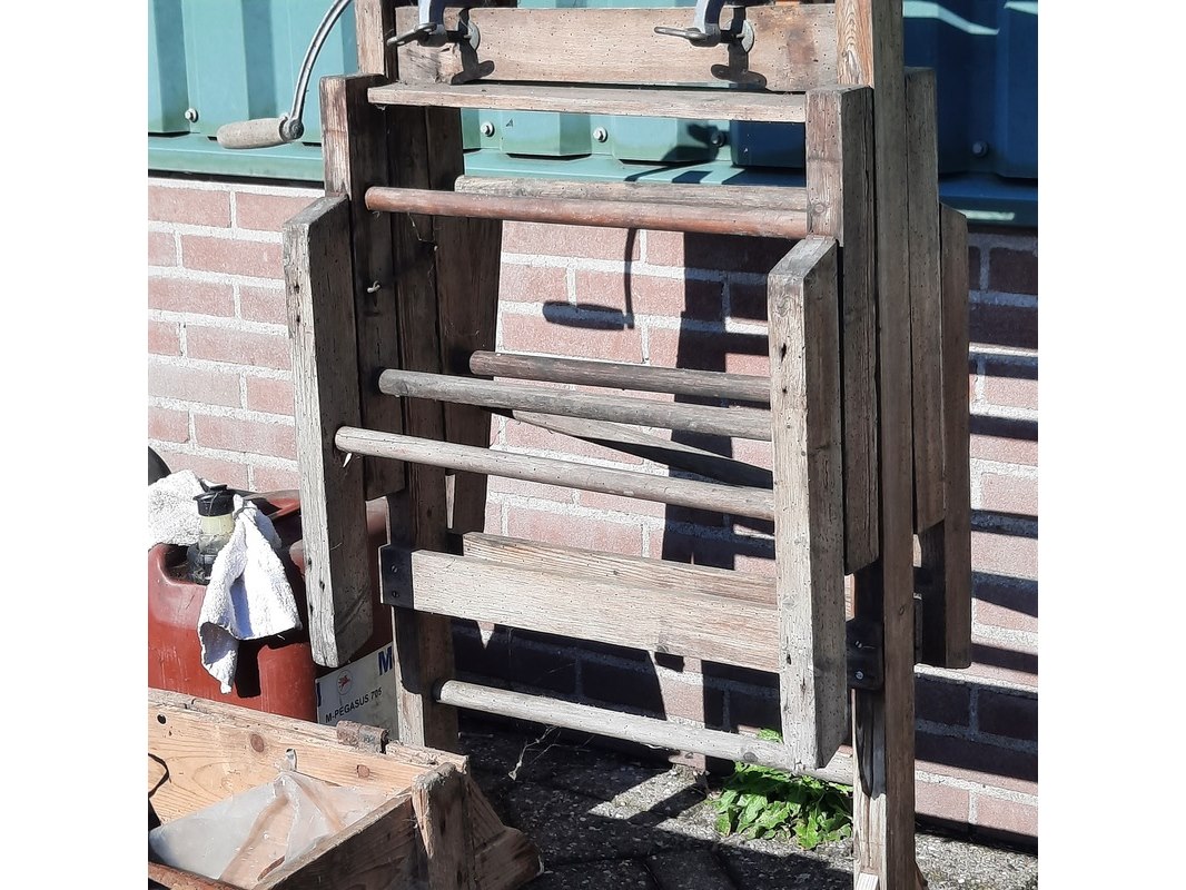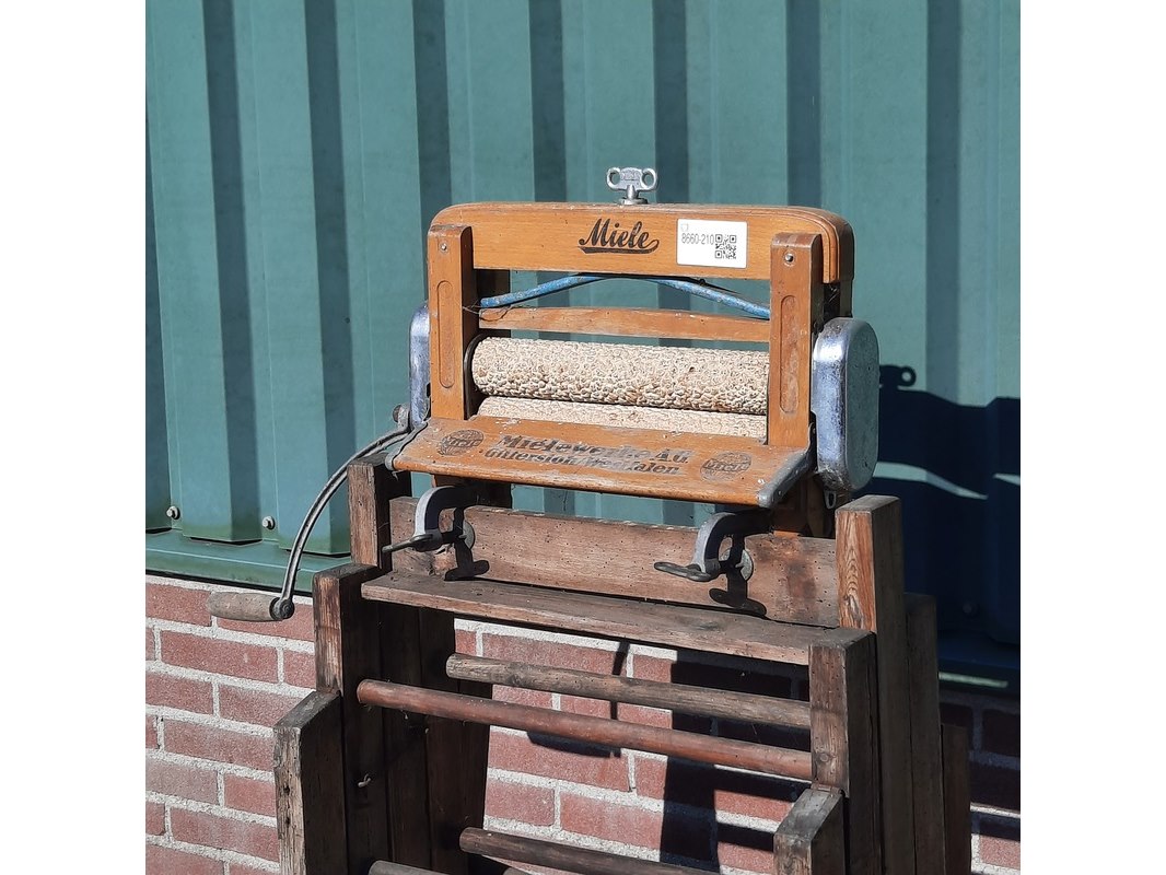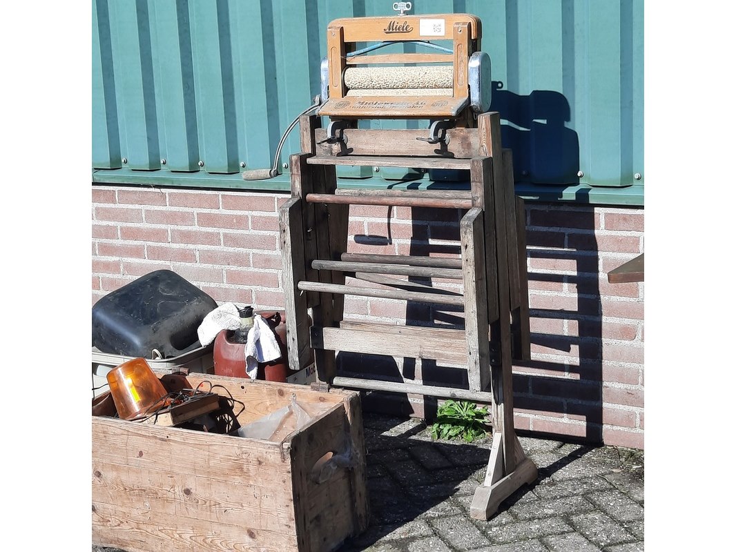 Product: Nostalgische handwringer Afmeting: afm. ca 130x58x61cm Specificaties: incl. diversen