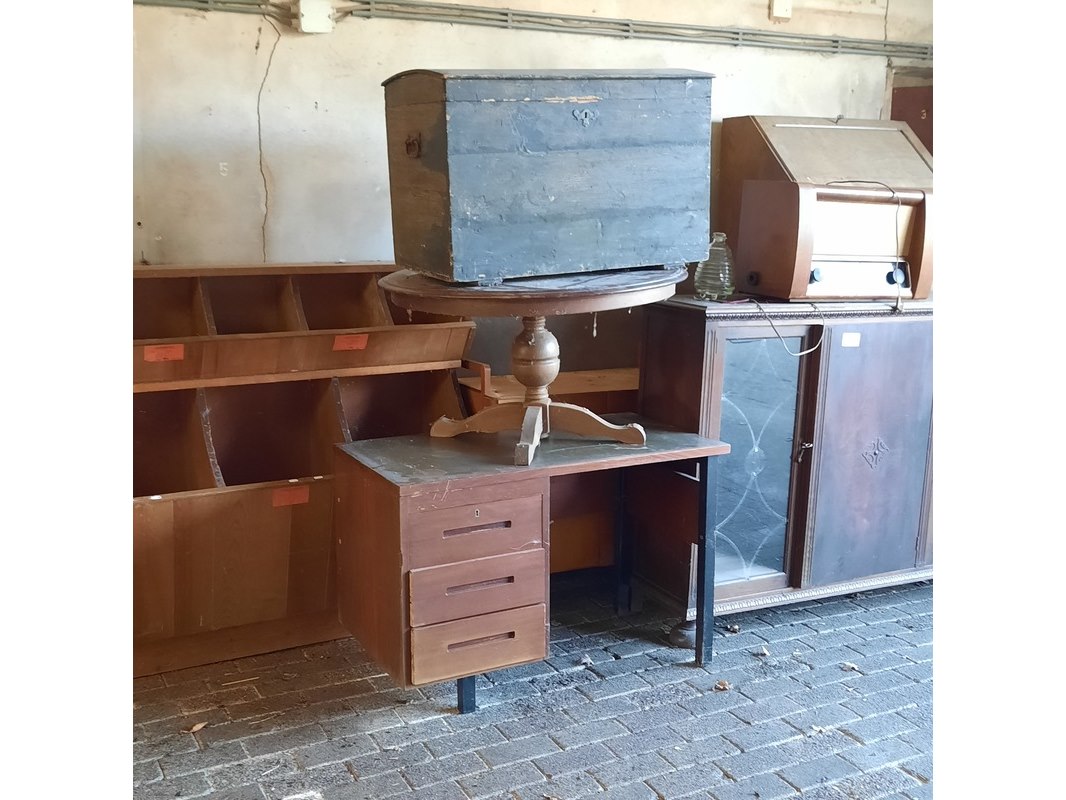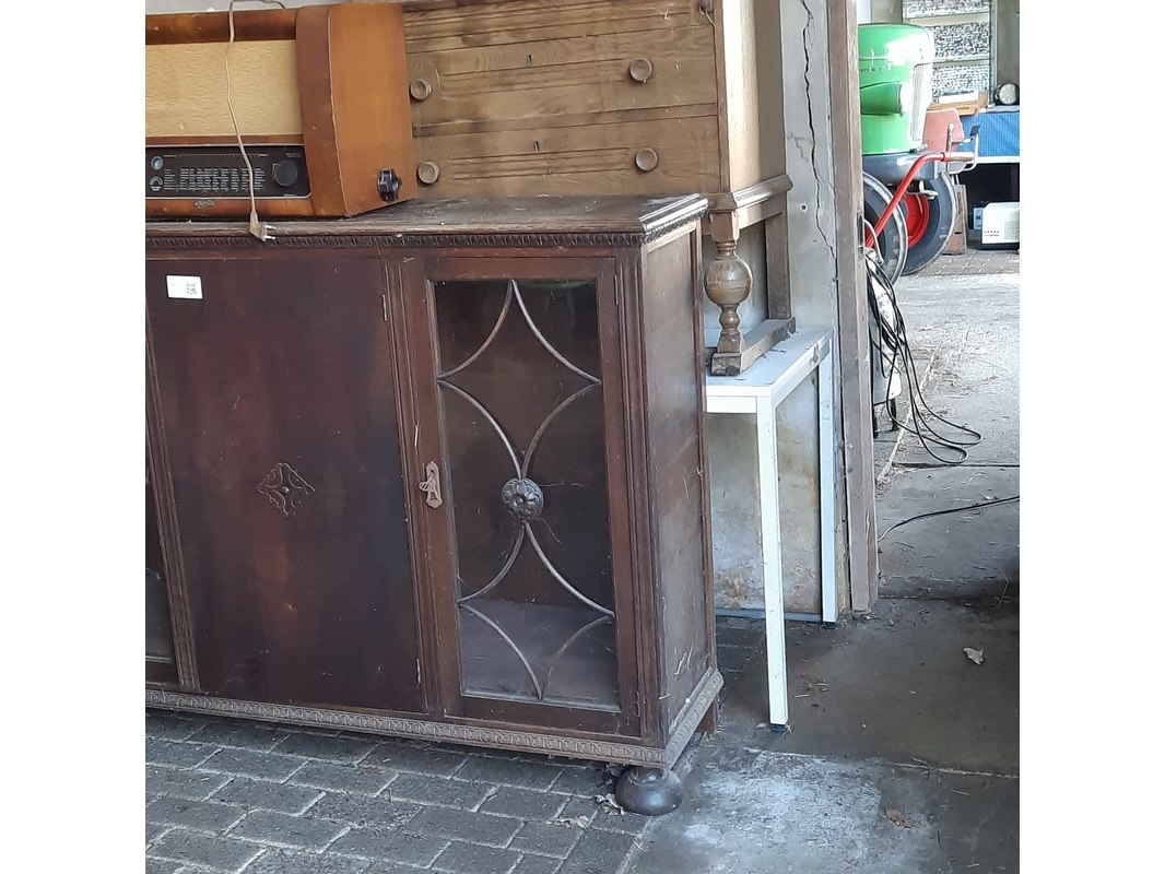 Product: Diverse nostalgische huisraad Specificaties: o.a. radio, koffietafel, vitrinekast, etc.