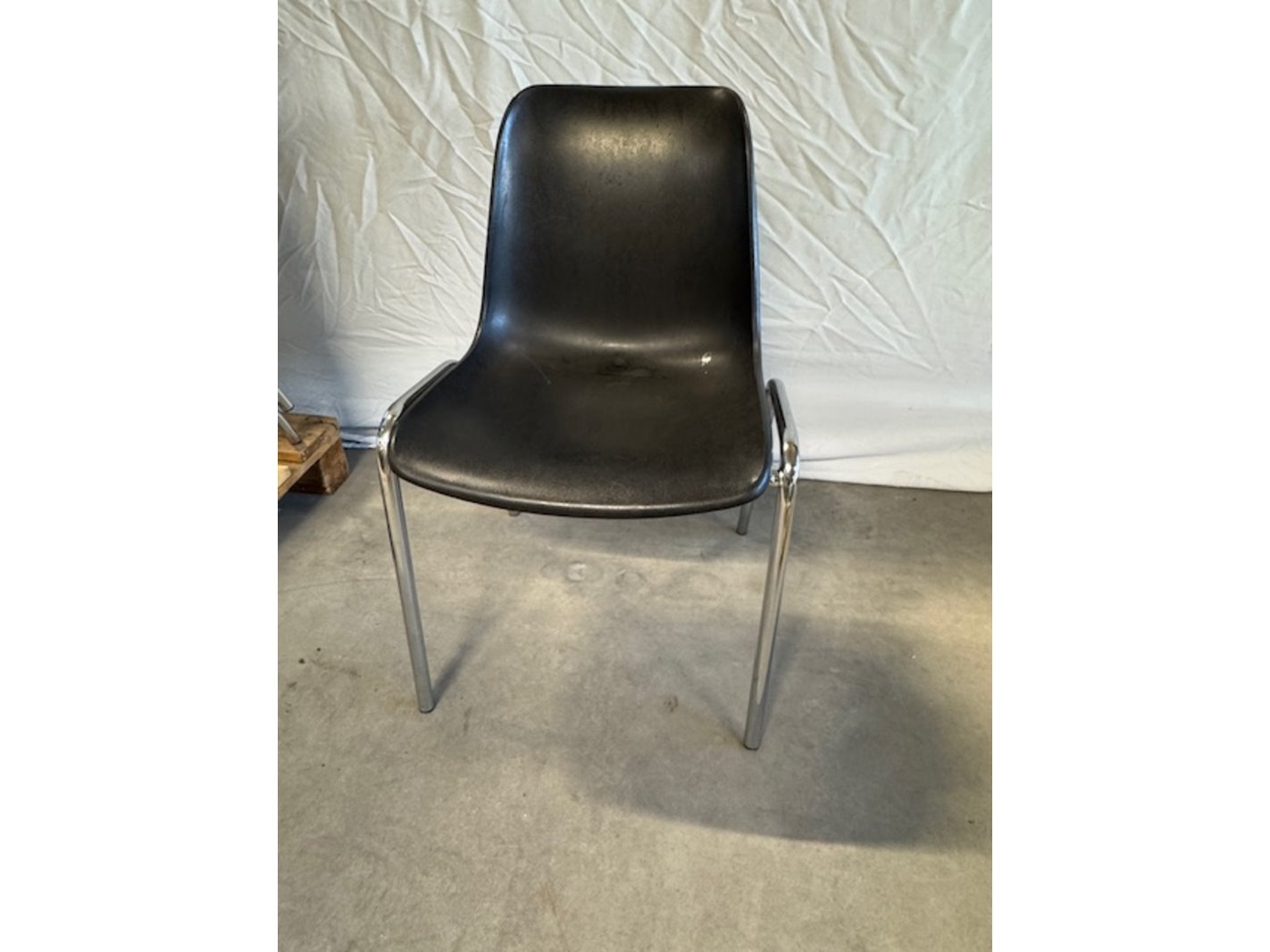 Merk: Berico Plast Product: Kantinestoel Kleur: zwart Materiaal: kunststof/metaal Afmeting: zithoogte ca. 47cm