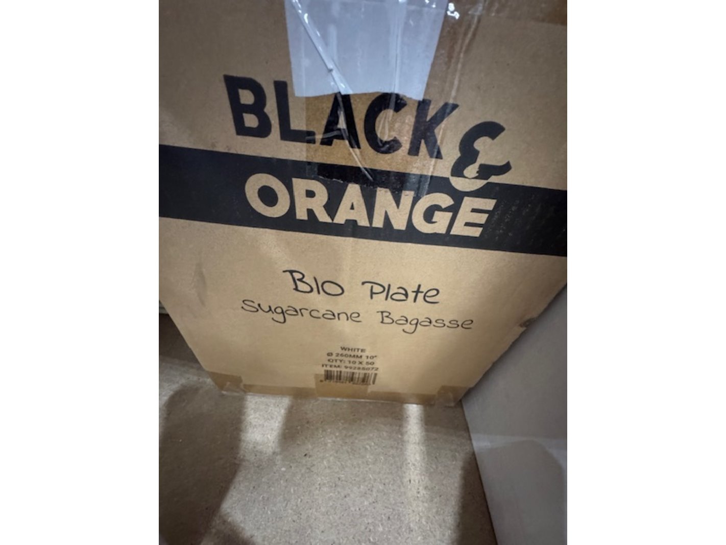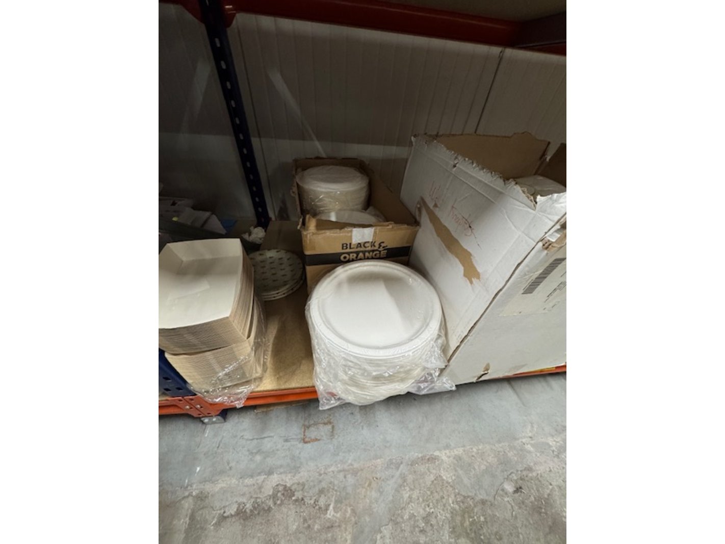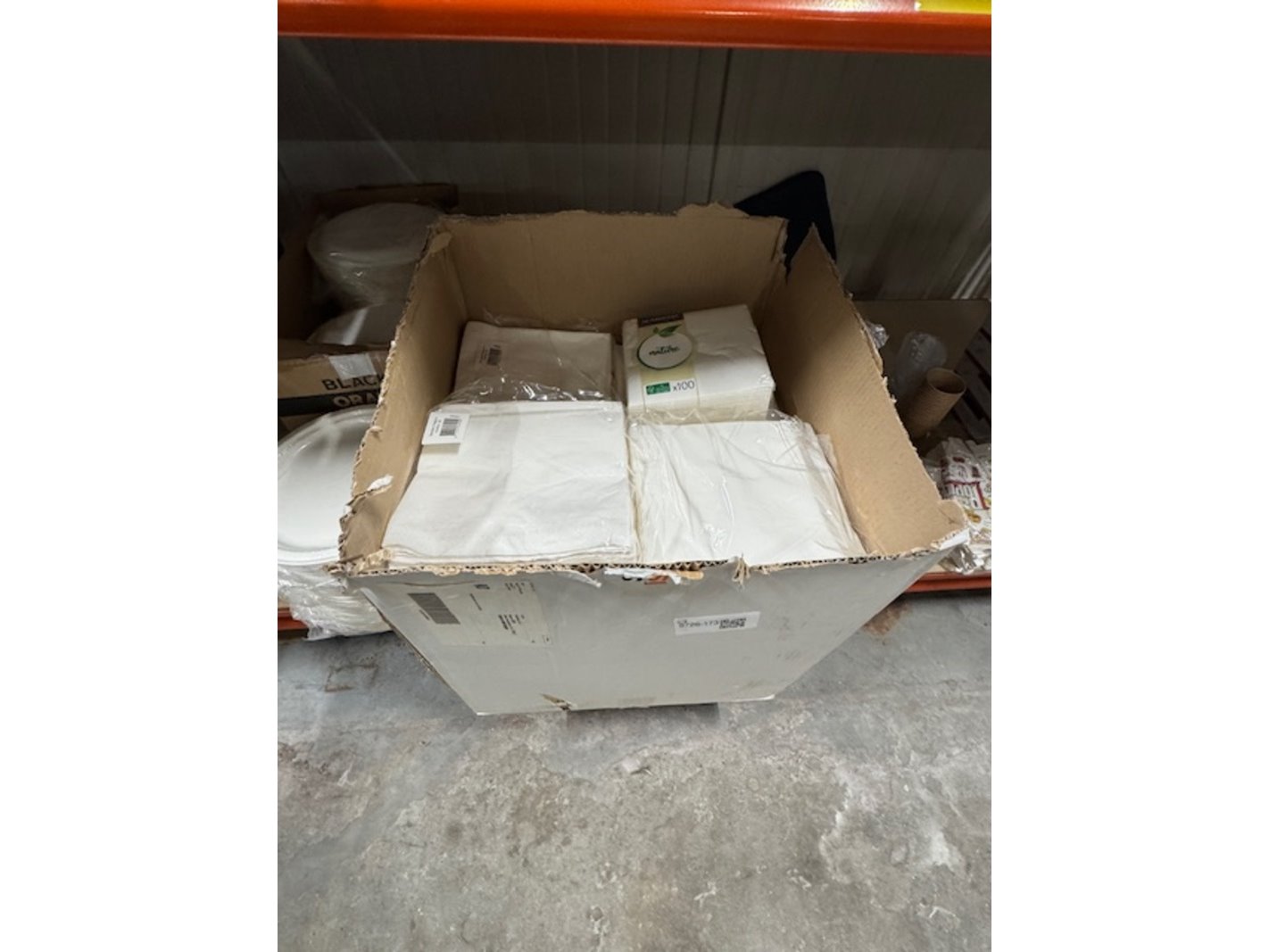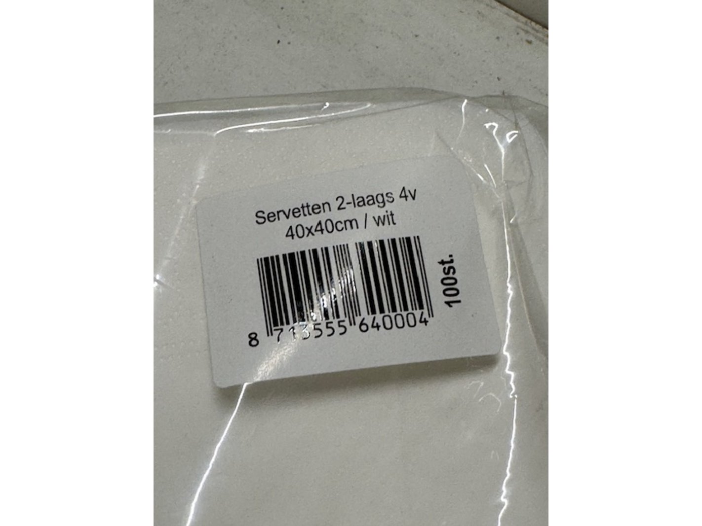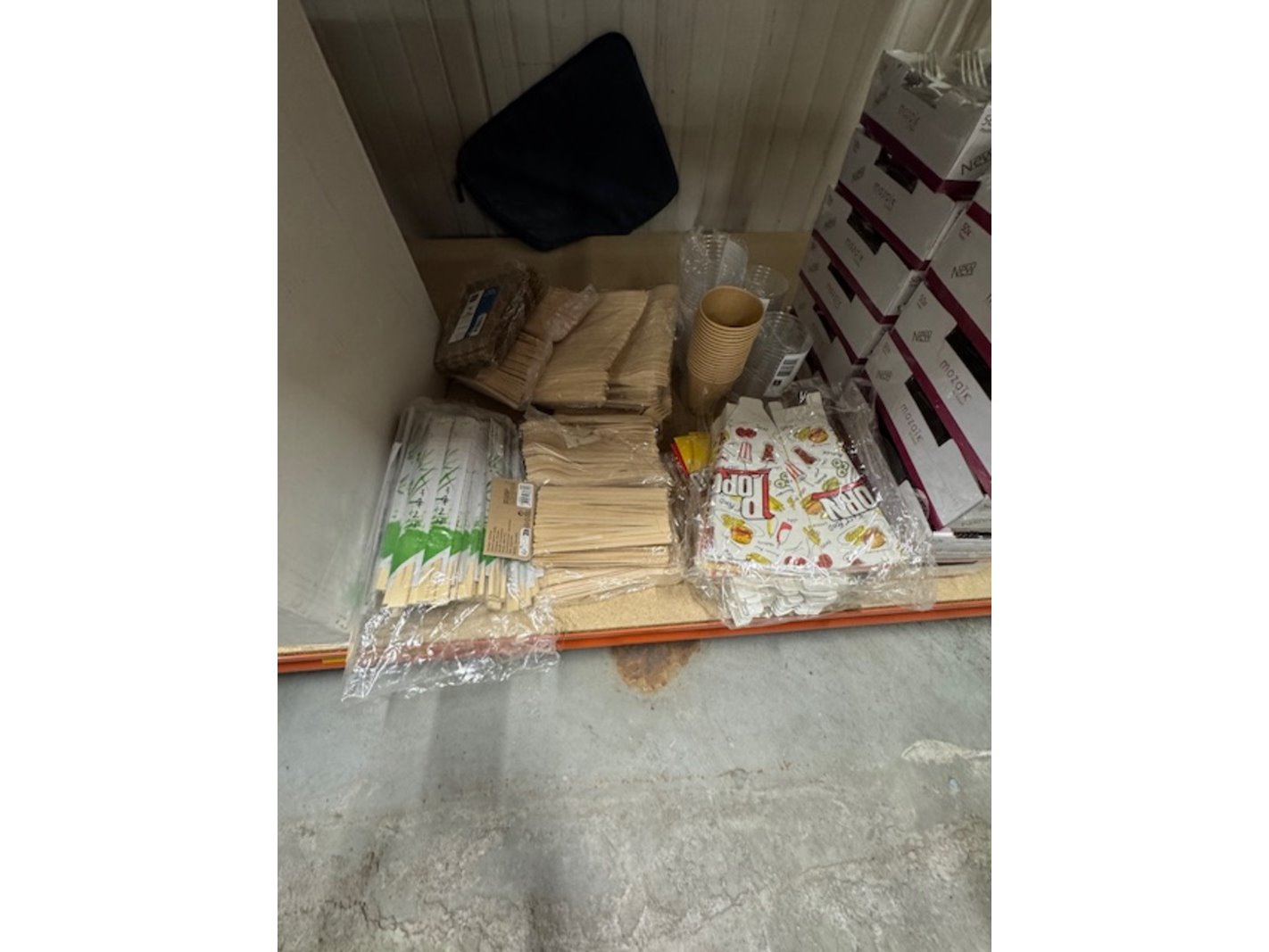 Product: Partij keuken disposables Specificaties: o.a.: servetten, bestek, borden, roerstaafjes etc