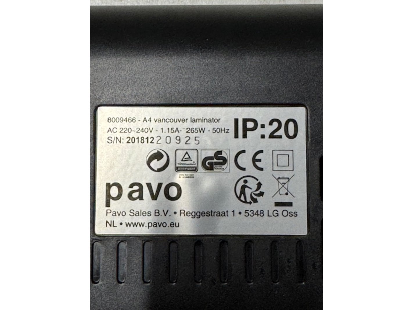 A4 laminator pavo, vancouver