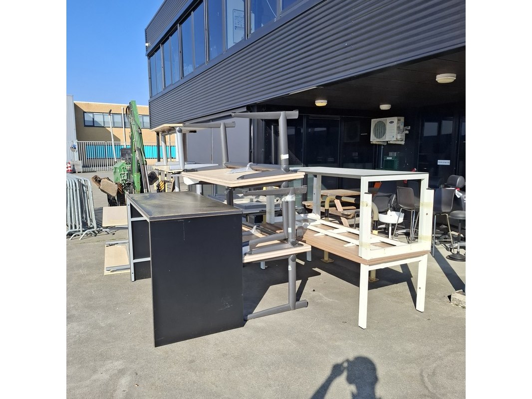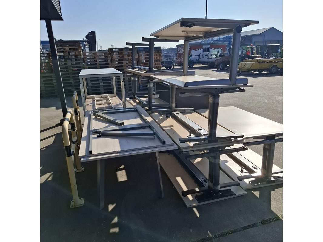 Product: (NS materiaal) ca. 13x Bureautafel Conditie: Gebruikt Specificaties: Bestaande uit: • 8x Bureau, ca. 1.610 x 800 mm (in hoogte verstelbaar) • 2x Bureau, ca. 2.010 x 830 x 620 mm • 1x Bureau, ca. 1.800 x 800 x 750 mm • 1x Bureau, ca. 2.000 x 1.000 mm • 1x Bureau, ca. 1.810 x 800 x 1.110 mm