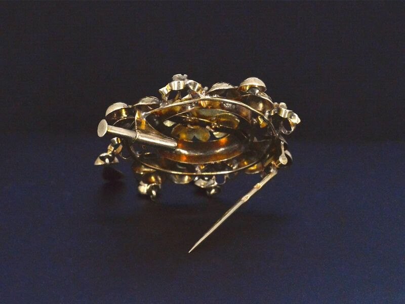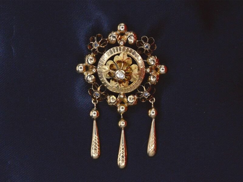 Product: Gouden broche met diamanten Specificaties: Diamant: Natuurlijk Aantal: 5 stuks Slijpvorm: Roos chipped Gewicht (carat): 0.10 carat Kleur: Wit Zuiverheid: Met natuurlijke insluitsels Juweel: Broche Gewicht: 7.7 gram Afmetingen/lengte: 56 x 37 mm Materiaal: 18k goud (750) Conditie: Vintage Verpakking: Luxe sieradendoos Toelichting: De kwaliteit is overgenomen van het rapport behorend bij item. De waardebepaling is een beoordeling van een gecertificeerde diamantair, gebaseerd op consumentenprijzen. Consumentenprijs: € 6.160,-