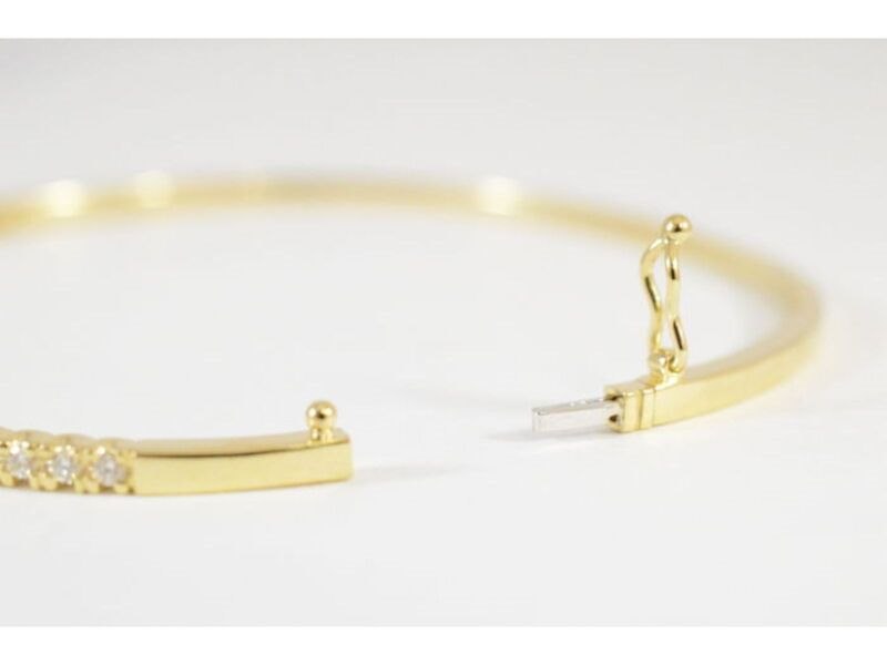 Product: Gouden diamanten armband Specificaties: Aantal: 33 stuks Slijpvorm: Briljant geslepen Gewicht (carat): 0.50 carat Kleur: F-G Zuiverheid: VS Slijpkwaliteit: Zeer mooi Juweel: Armband Gewicht: 8.5 gram Afmetingen/lengte: Diameter: 60 mm Materiaal: 18K goud (750) geelgoud Conditie: Nieuw Verpakking: Luxe sieradendoos Toelichting: De kwaliteit is overgenomen van het rapport behorend bij item. De waardebepaling is een beoordeling van een gecertificeerde diamantair, gebaseerd op consumentenprijzen. Consumentenprijs: € 7.105,-