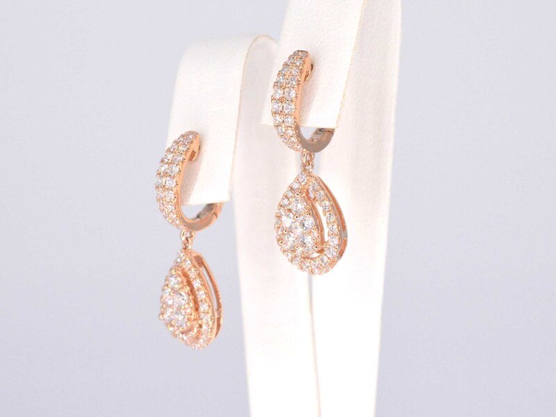 Product: Rosegouden druppelvormige oorhangers met briljant geslepen diamanten Specificaties: Diamant: Natuurlijk Slijpvorm: Briljant geslepen Gewicht (carat): 1.75 carat Kleur: F-G Zuiverheid: VS Slijpkwaliteit: Zeer mooi Juweel: Oorhanger Gewicht: 6.1 gram Afmetingen/lengte: 2.8 x 1 cm Materiaal: 18K goud (750) rosegoud Conditie: Nieuw Verpakking: Luxe sieradendoos Toelichting: De kwaliteit is overgenomen van het rapport behorend bij item. De waardebepaling is een beoordeling van een gecertificeerde diamantair, gebaseerd op consumentenprijzen. Consumentenprijs: € 10.658,-