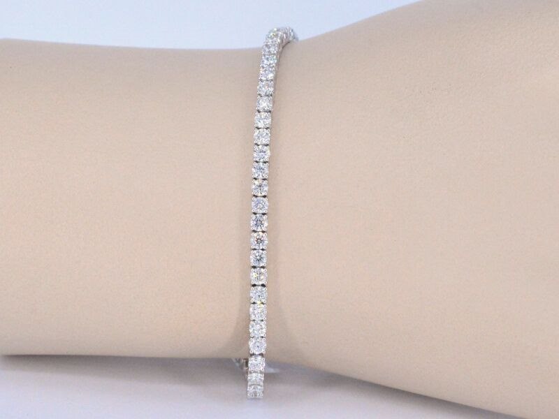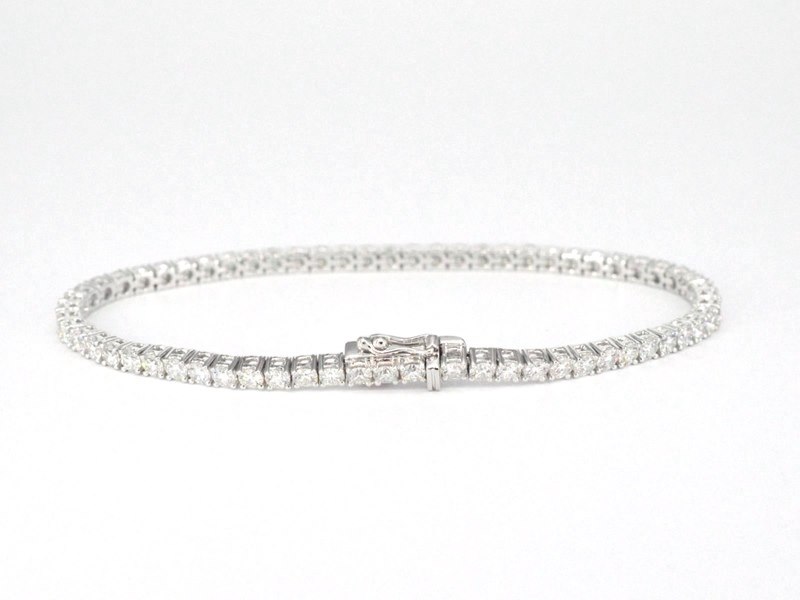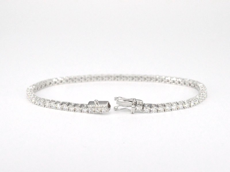 Product: Witgouden tennisarmband met 5.00 carat natuurlijke briljant geslepen diamanten Specificaties: Diamant: natuurlijk Slijpvorm: Briljant geslepen Gewicht (carat): 5.00 carat Kleur: F-G Zuiverheid: VS Slijpkwaliteit: Excellent Juweel: Armband Gewicht: 9.7 gram Afmetingen/lengte: 17-18 cm Materiaal: 18K goud (750) Conditie: Nieuw Verpakking: Luxe sieradendoos Toelichting: De kwaliteit is overgenomen van het rapport behorend bij item. De waardebepaling is een beoordeling van een gecertificeerde diamantair, gebaseerd op consumentenprijzen. Consumentenprijs: € 24.465,-
