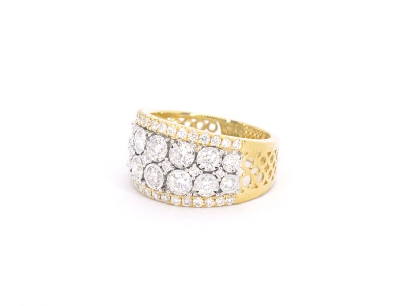 Product: Gouden pavering met diamanten Specificaties: Aantal: 50 stuks Slijpvorm: Briljant geslepen Gewicht (carat): 1.50 carat Kleur: F-G Zuiverheid: VS Slijpkwaliteit: Zeer mooi Juweel: Ring Gewicht: 6.3 gram Ringmaat (op maat gemaakt*): 53 (17 mm) Materiaal: 18K goud (750) Conditie: Nieuw Verpakking: Luxe sieradendoos Toelichting: De kwaliteit is overgenomen van het rapport behorend bij item. De waardebepaling is een beoordeling van een gecertificeerde diamantair, gebaseerd op consumentenprijzen. Consumentenprijs: € 10.203,-