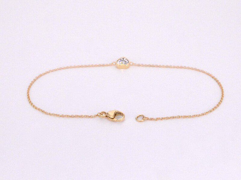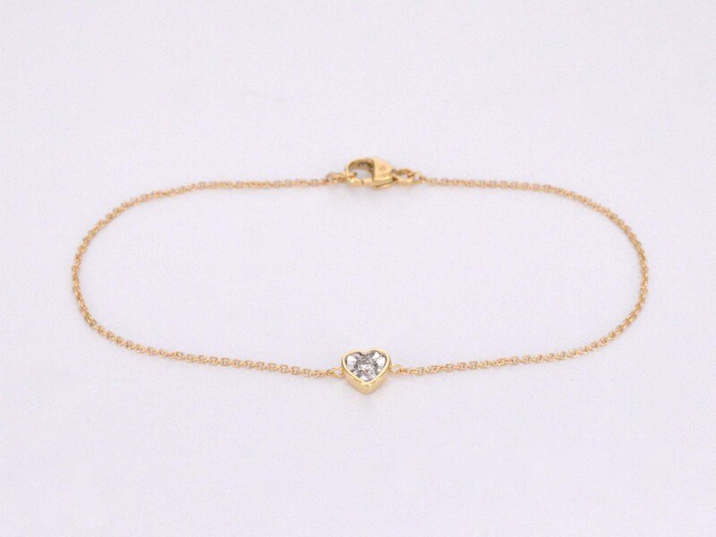 Product: Gouden armband met diamanten hartje 0.10 carat Specificaties: Diamant: Natuurlijk Slijpvorm: Briljant geslepen Gewicht (carat): 0.10 carat Kleur: F-G Zuiverheid: SI-P Slijpkwaliteit: Zeer mooi Juweel: Armband Gewicht: 1.2 gram Afmetingen/lengte: 18 cm Materiaal: 14 karaat (585) Conditie: Nieuw Verpakking: Luxe sieradendoos Toelichting: De kwaliteit is overgenomen van het rapport behorend bij item. De waardebepaling is een beoordeling van een gecertificeerde diamantair, gebaseerd op consumentenprijzen. Consumentenprijs: € 1.085,-