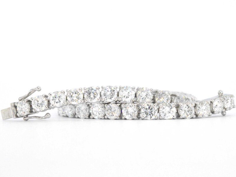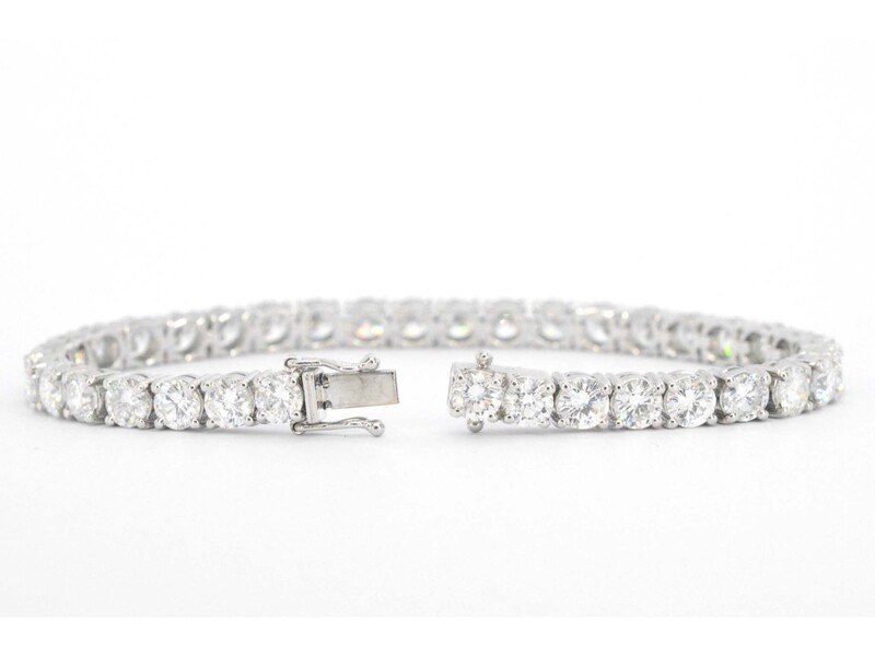 Product: Witgouden tennisarmband met 16.20 carat diamant Specificaties: Diamant: Natuurlijk Aantal: 36 stuks Slijpvorm: Briljant geslepen Gewicht (carat): 16.20 carat Kleur: F-G Zuiverheid: VS Slijpkwaliteit: Zeer mooi Juweel: Armband Gewicht: 20.2 gram Afmetingen/lengte: 18 cm Materiaal: 18K goud (750) Conditie: Nieuw Verpakking: Luxe sieradendoos Toelichting: De kwaliteit is overgenomen van het rapport behorend bij item. De waardebepaling is een beoordeling van een gecertificeerde diamantair, gebaseerd op consumentenprijzen. Consumentenprijs: € 155.000,-