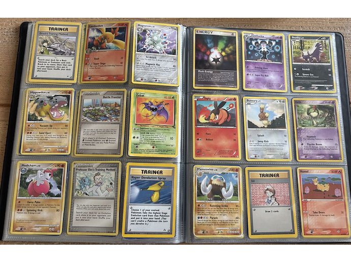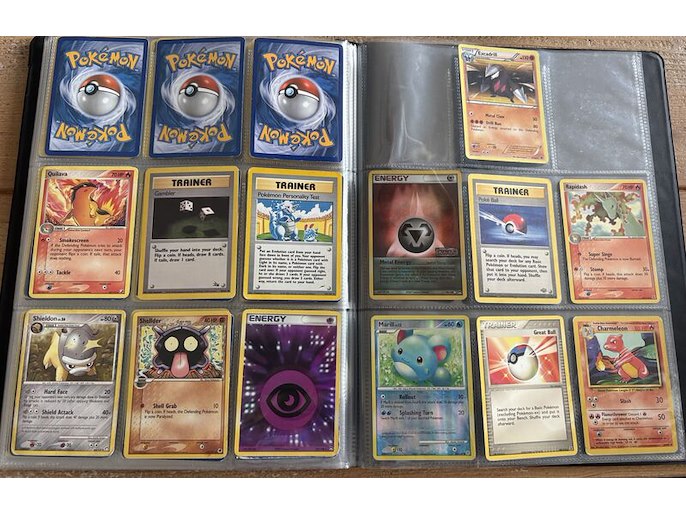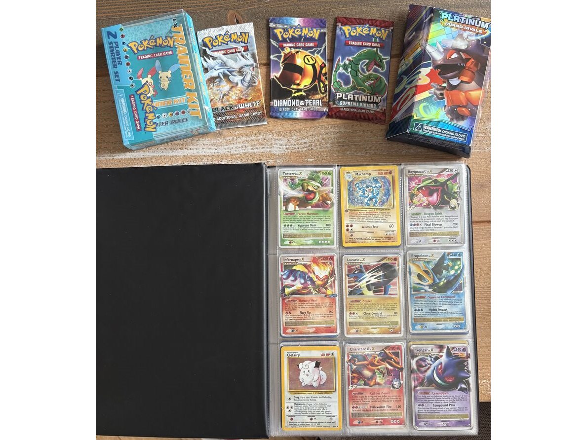 Product: Oude Pokémon verzameling Conditie: Gebruikt Specificaties: Oude verzameling Pokémon met wat oude verpakkingen (in de verpakkingen zitten nog wat boekjes etc., geen kaarten). Op de eerste 5 pagina's zijn bijna alle kaarten glimmend.