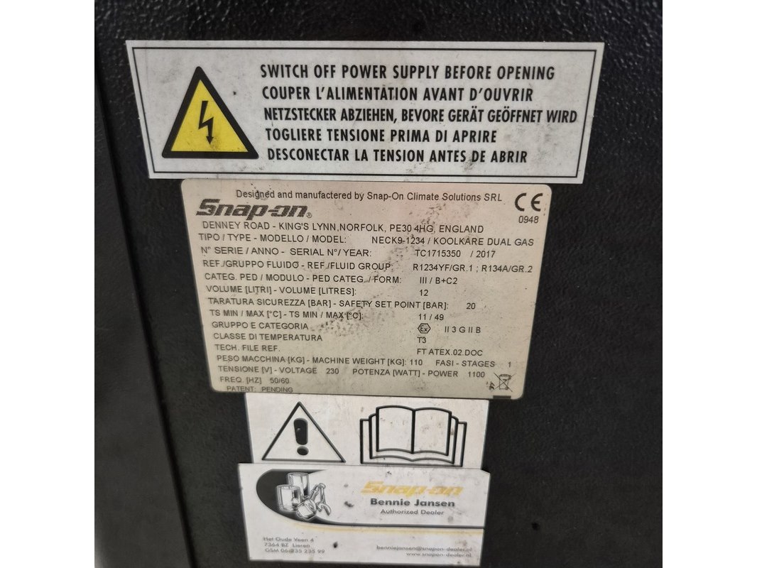 Airco vulstation, snap-on, neck 9-1234 / koolkare dual gas, 2017