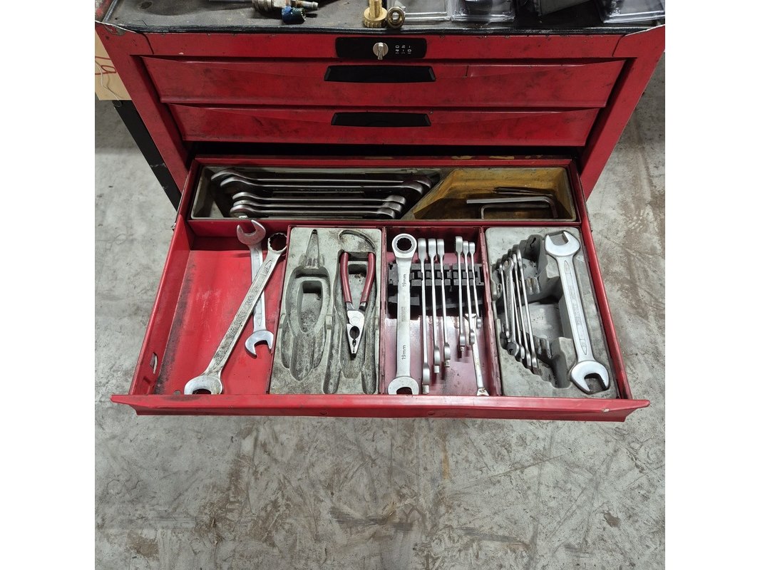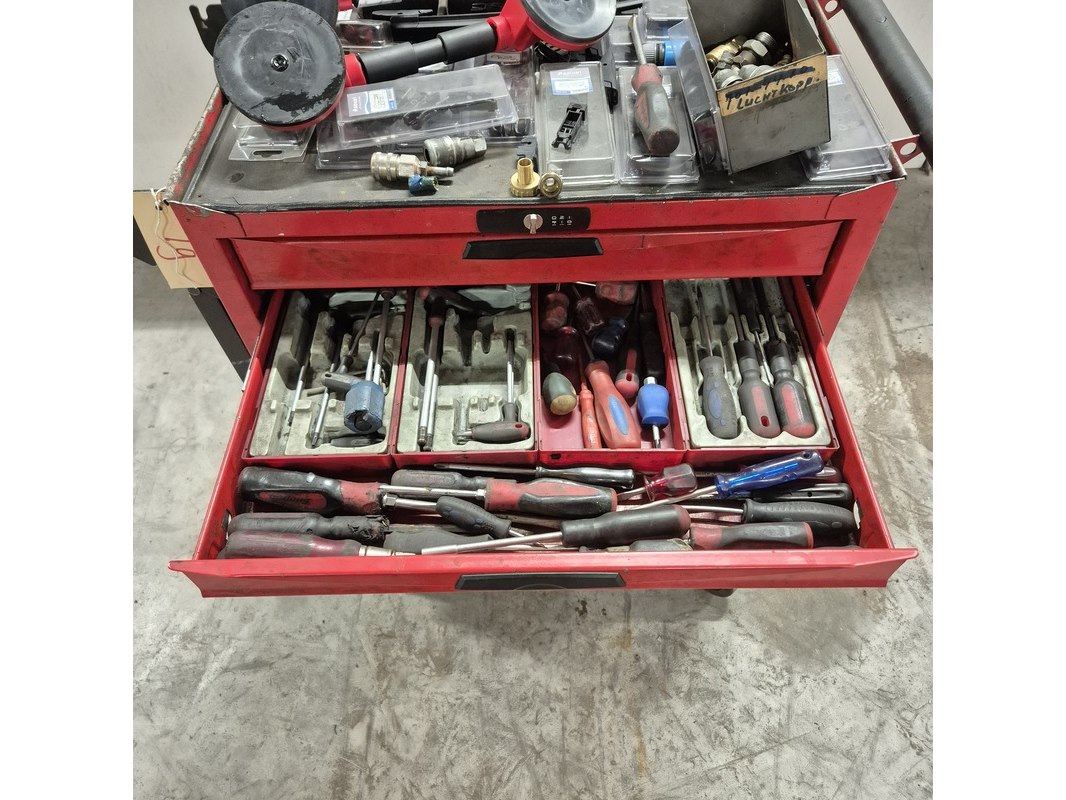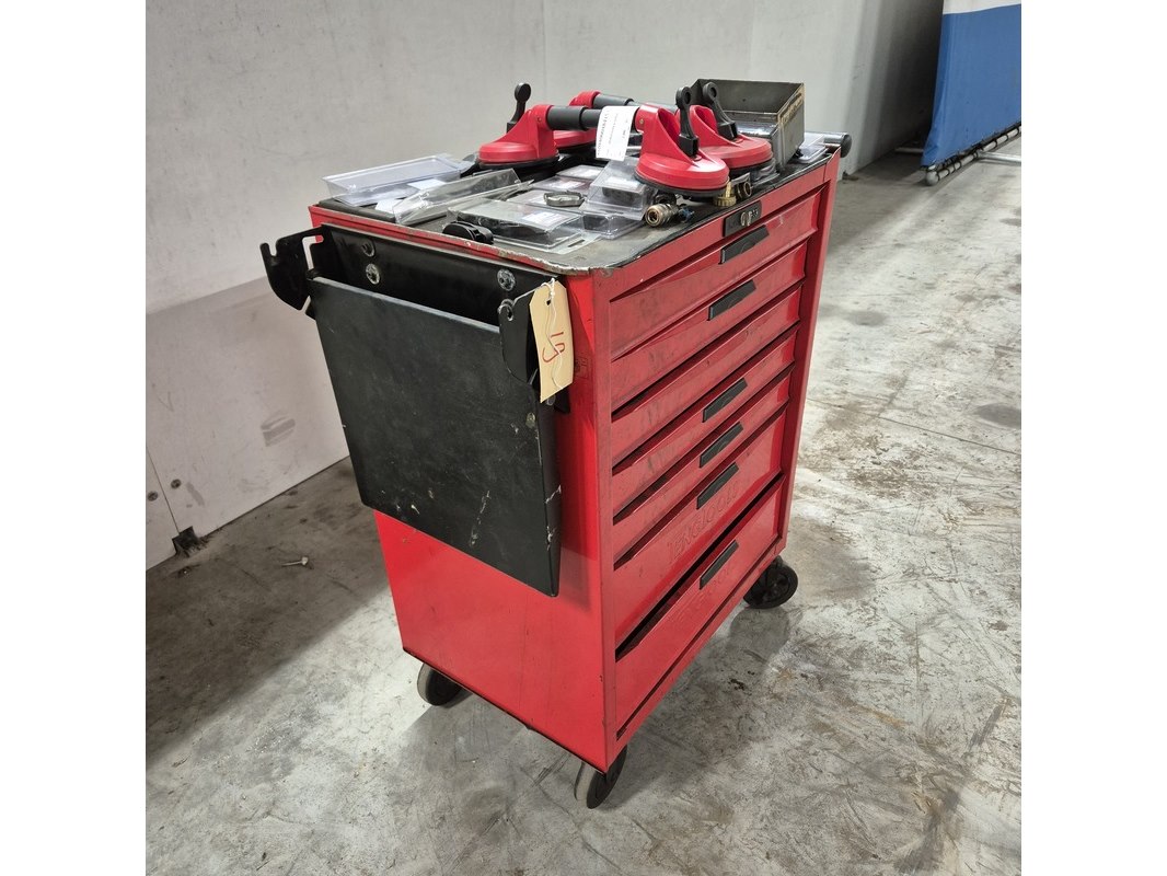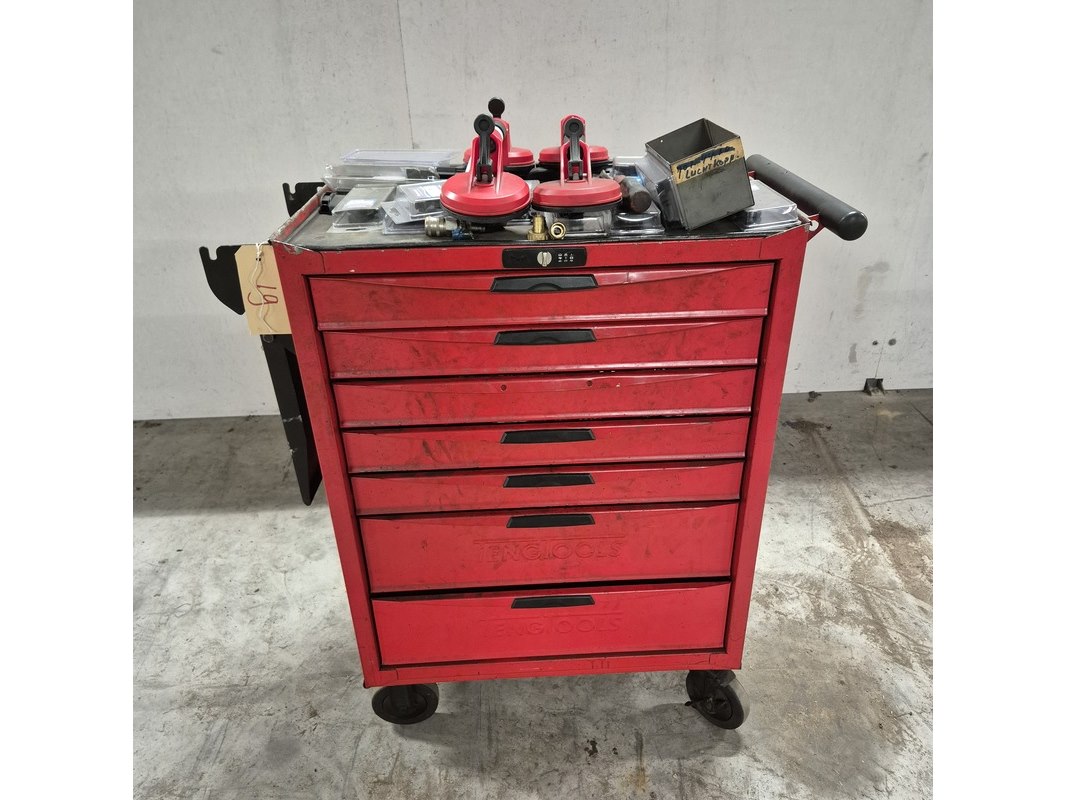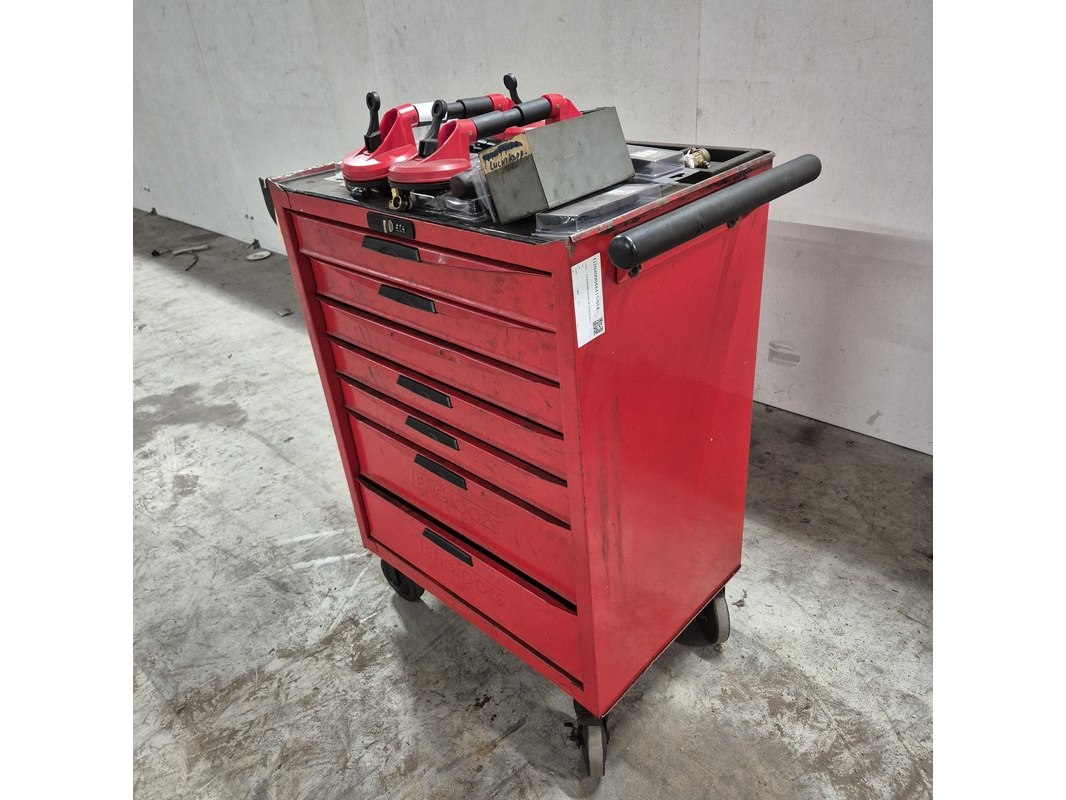 Merk: o.a Tengtools Product: Gereedschapskar met inhoud en zuignappen Afmeting: hxbxd ca. 96x86x46 cm Conditie: gebruikt