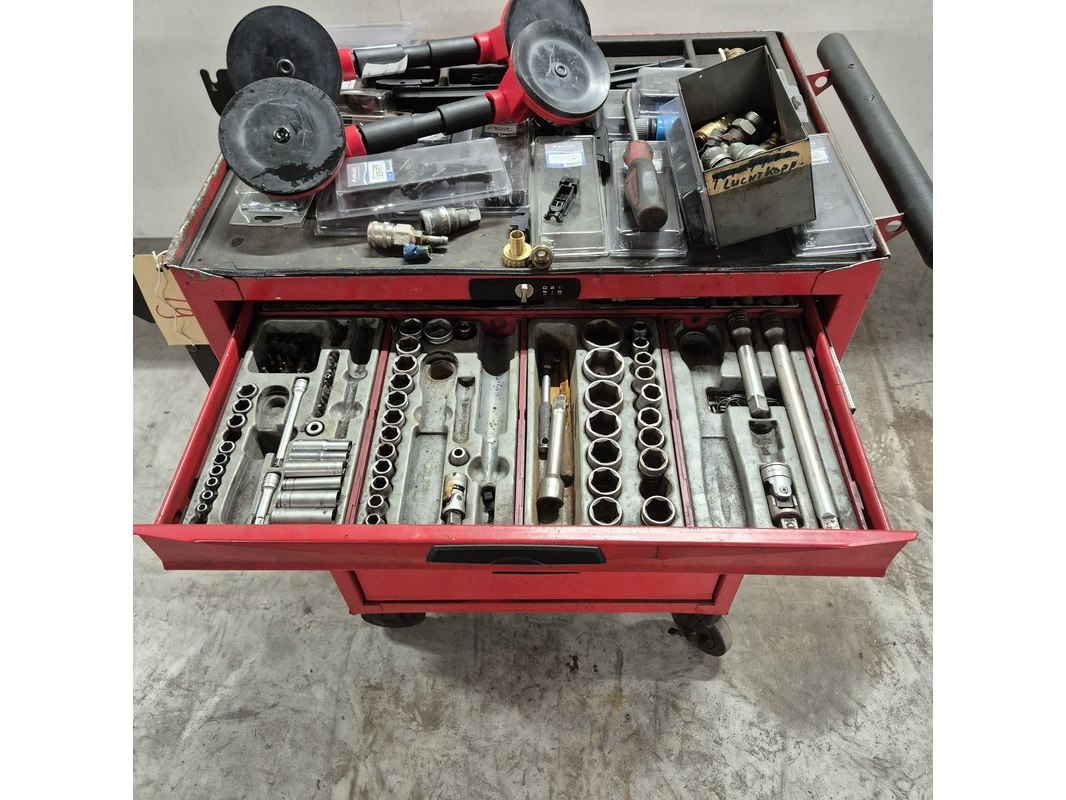 Gereedschapskar met inhoud en zuignappen, o.a tengtools