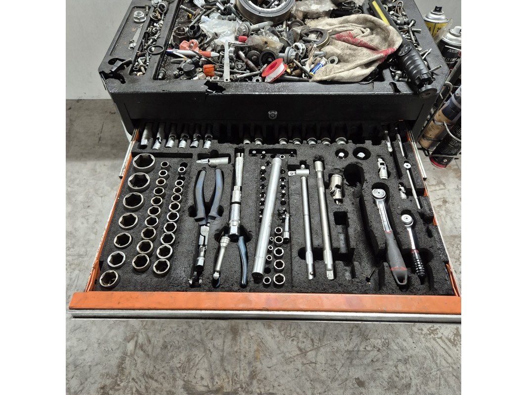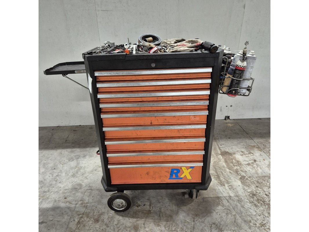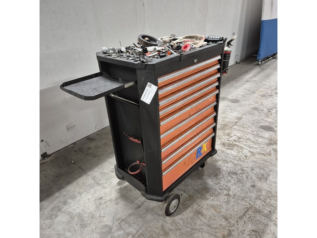 Merk: RX Product: Gereedschapskar met inhoud Afmeting: hxbxd ca. 103x73x47 cm Conditie: gebruikt
