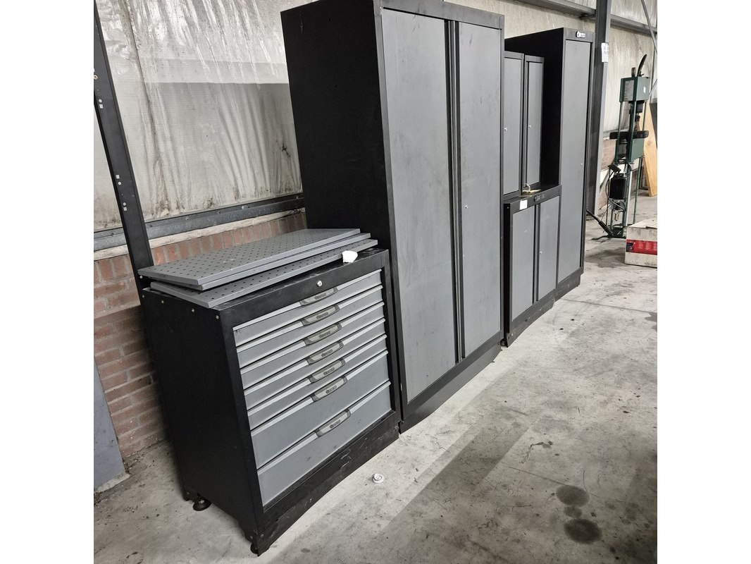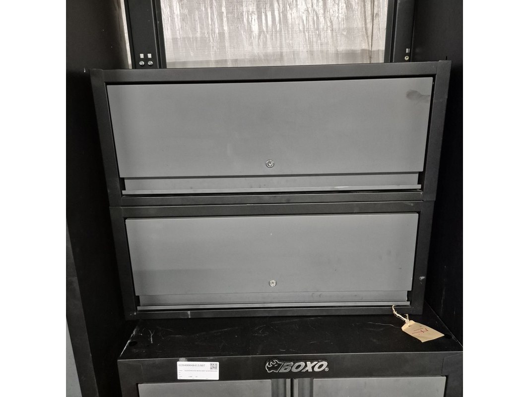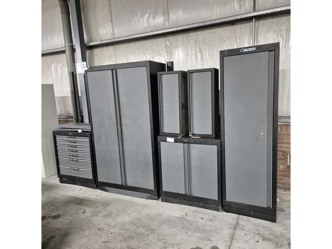 Merk: Boxo Product: Kastenwand Afmeting: hxd ca. 198x53 cm. Conditie: gebruikt Specificaties: De kasten hebben diverse gebruikssporen, compleetheid onbekend.
