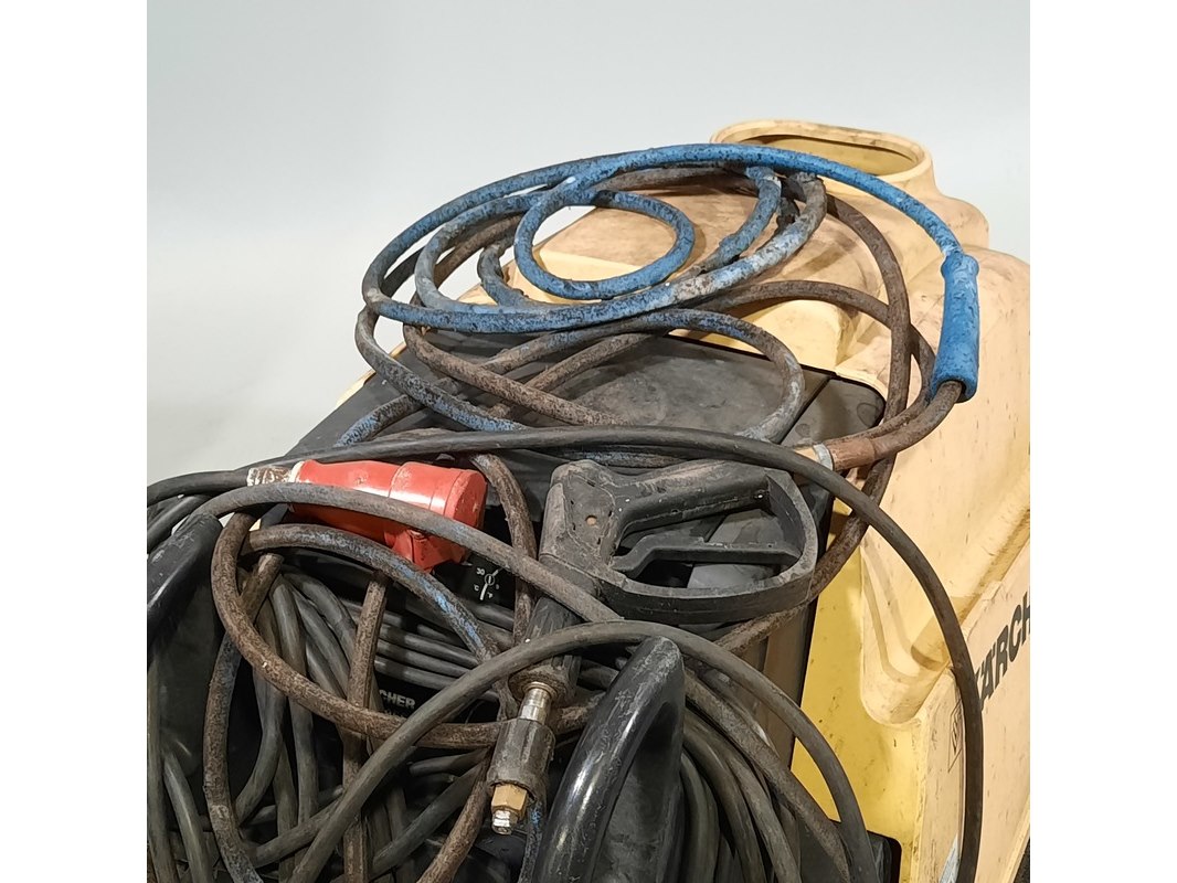 Merk: Kärcher Product: Hogedrukreiniger BouwJaar: 2004 Conditie: gebruikt Specificaties: 400V 5,8 kW Exclusief lans, slangen poreus en gebroken