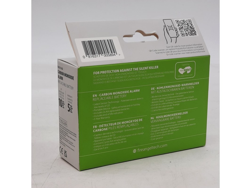 Merk: FireAngel Product: Rookmelder Conditie: gebruikt Specificaties: Doosje beschadigd