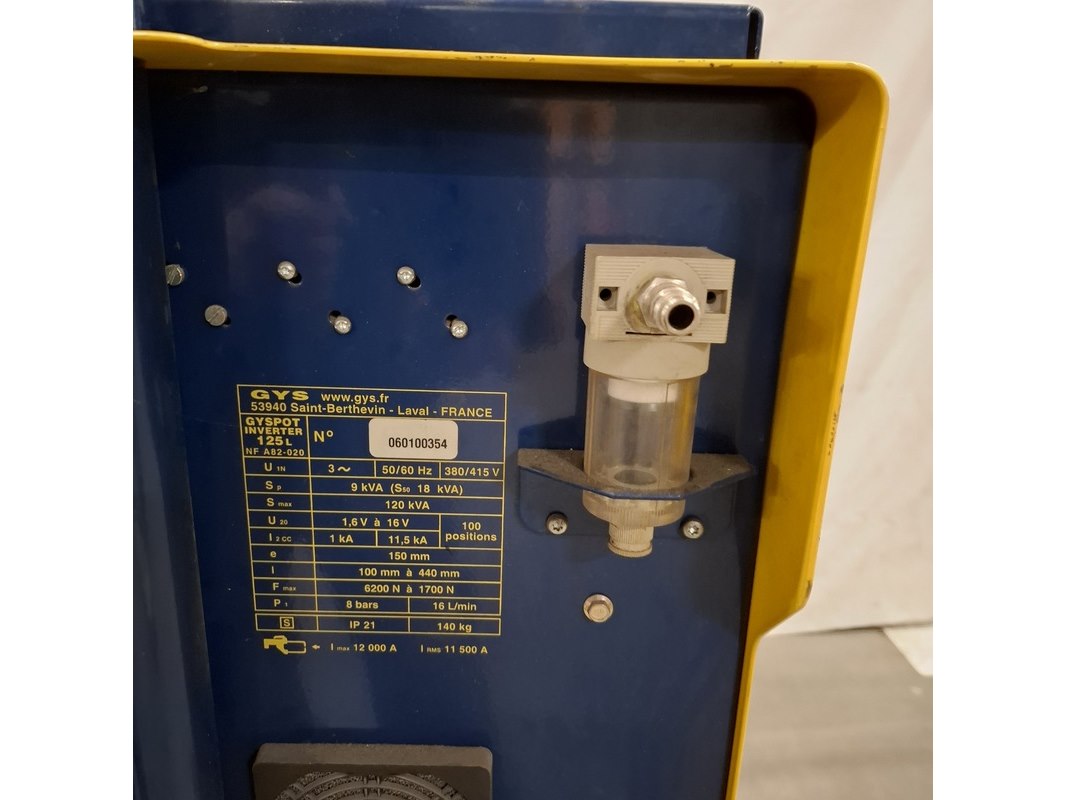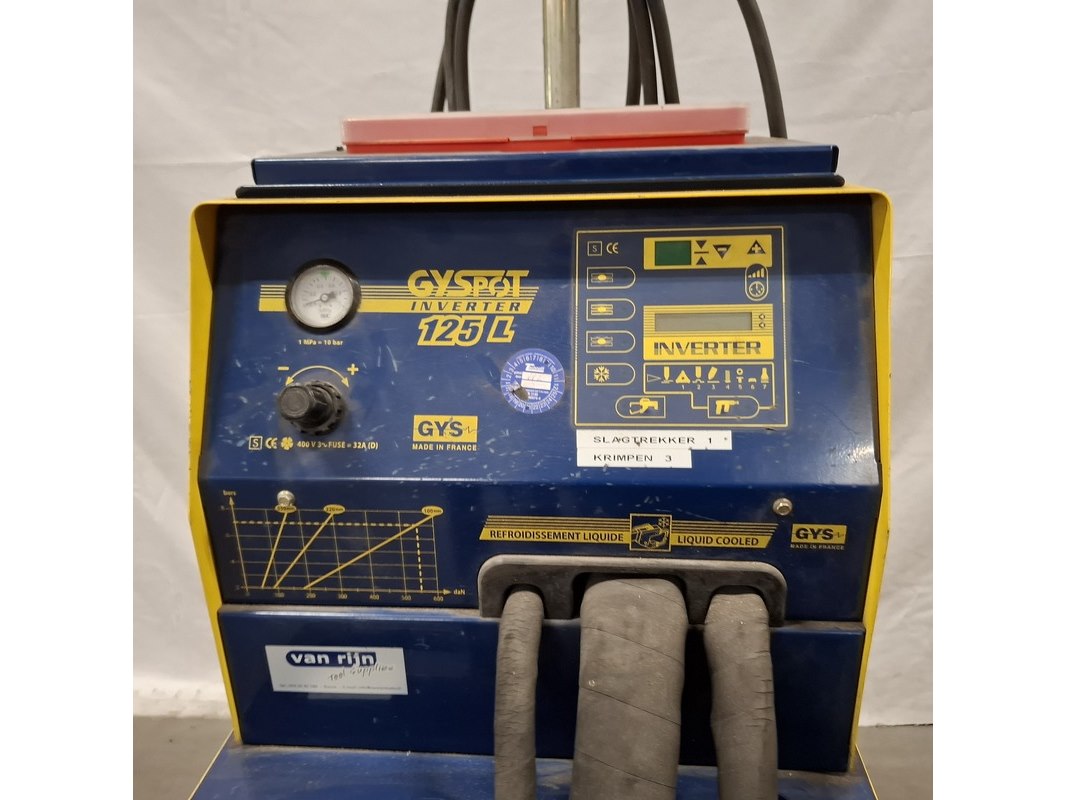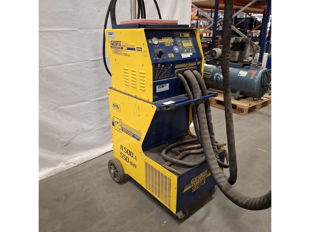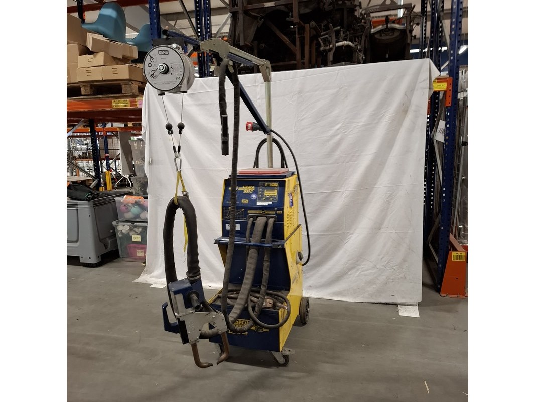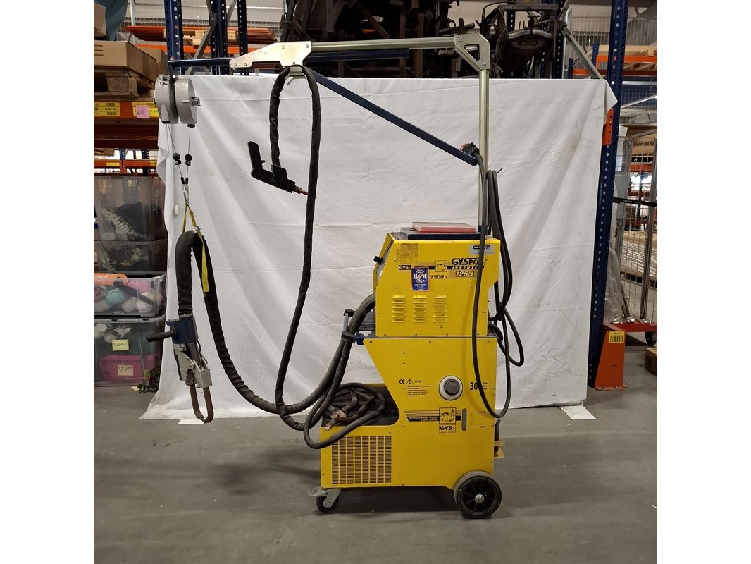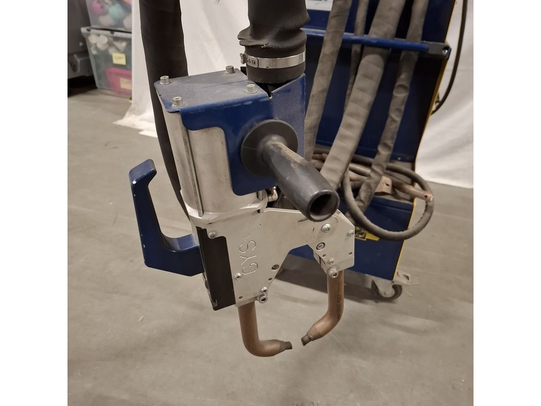 Merk: Gyspot Product: Puntlasapparaat Kleur: Geel Materiaal: Metaal Conditie: Gebruikt Specificaties: Mobiel puntlasapparaat voor schadeherstel.