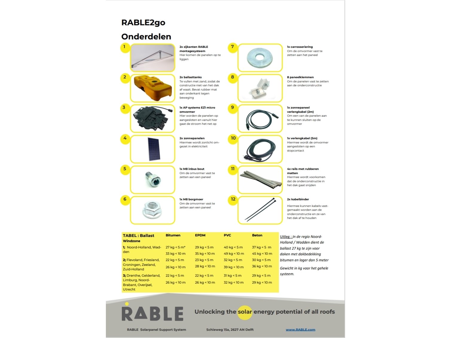 Merk: RABLE Product: Stekkerklare zonnepanelen set Materiaal: Aluminium Afmeting: 270x173x34 BouwJaar: 2023 Conditie: Nieuw Specificaties: Stekkerklare zonnepanelen set (DIY) Met de RABLE2go begin je snel met het opwekken van je eigen stroom. Ontworpen voor mensen die wél willen verduurzamen, maar geen gedoe willen met ingewikkelde installaties. Ideaal als je weinig ruimte hebt en toch direct voordeel wilt. Met één RABLE2go kun je je jaarlijkse energieverbruik tot wel 30% verminderen (afhankelijk van je situatie). Geen installateur nodig en geen ingrijpende aanpassingen aan je meterkast. Voor installatie-instructies en veiligheidsinformatie: zie de installatiehandleiding op shop.rable.nl.