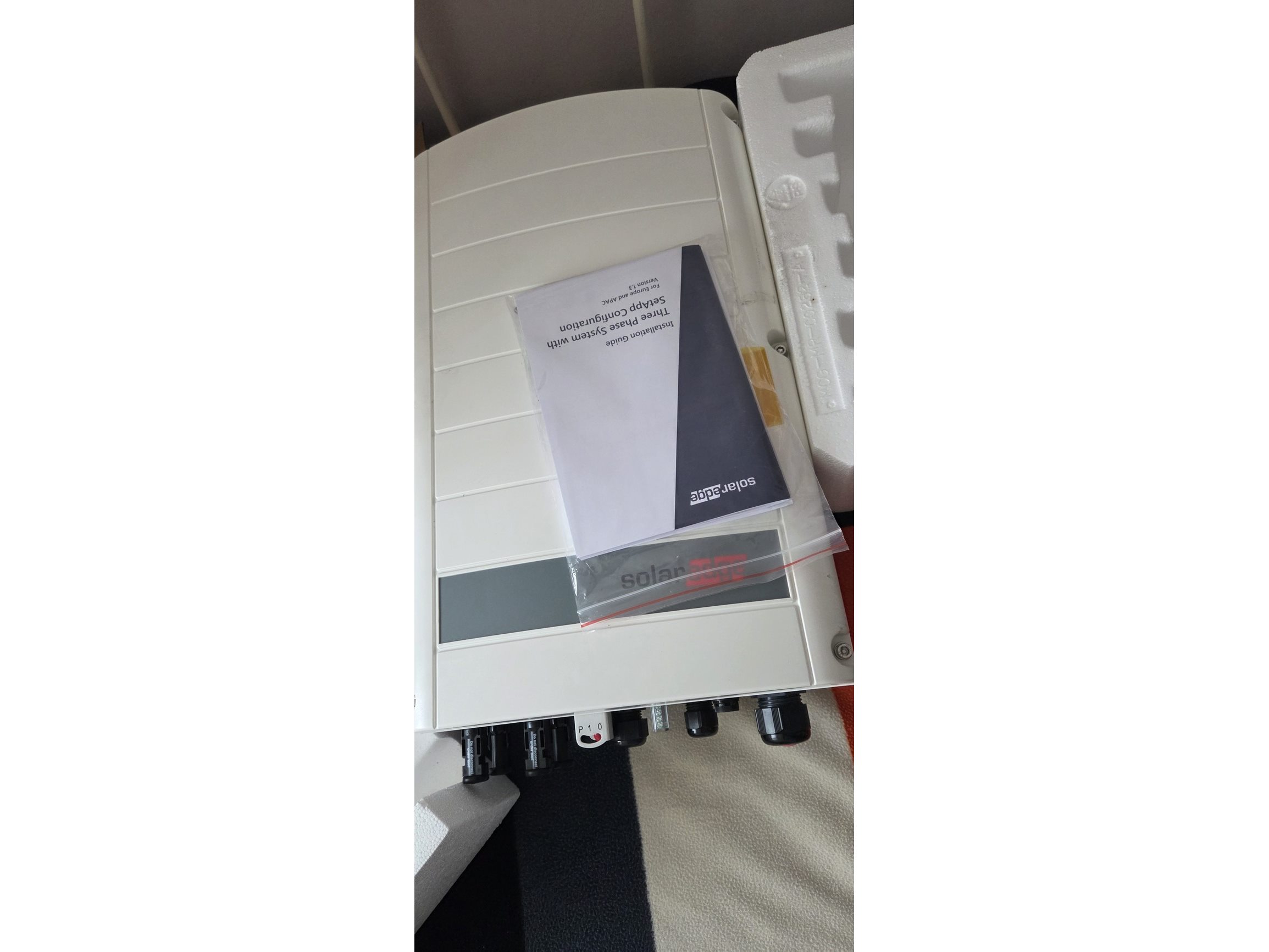 Merk: Solaredge Product: Omvormers Kleur: Wit Afmeting: Hoogte 540mm breedte 315mm diepte 191mm gewicht ongeveer 16'4 BouwJaar: 2022 Conditie: Nieuw Specificaties: Opengemaakt voor foto's