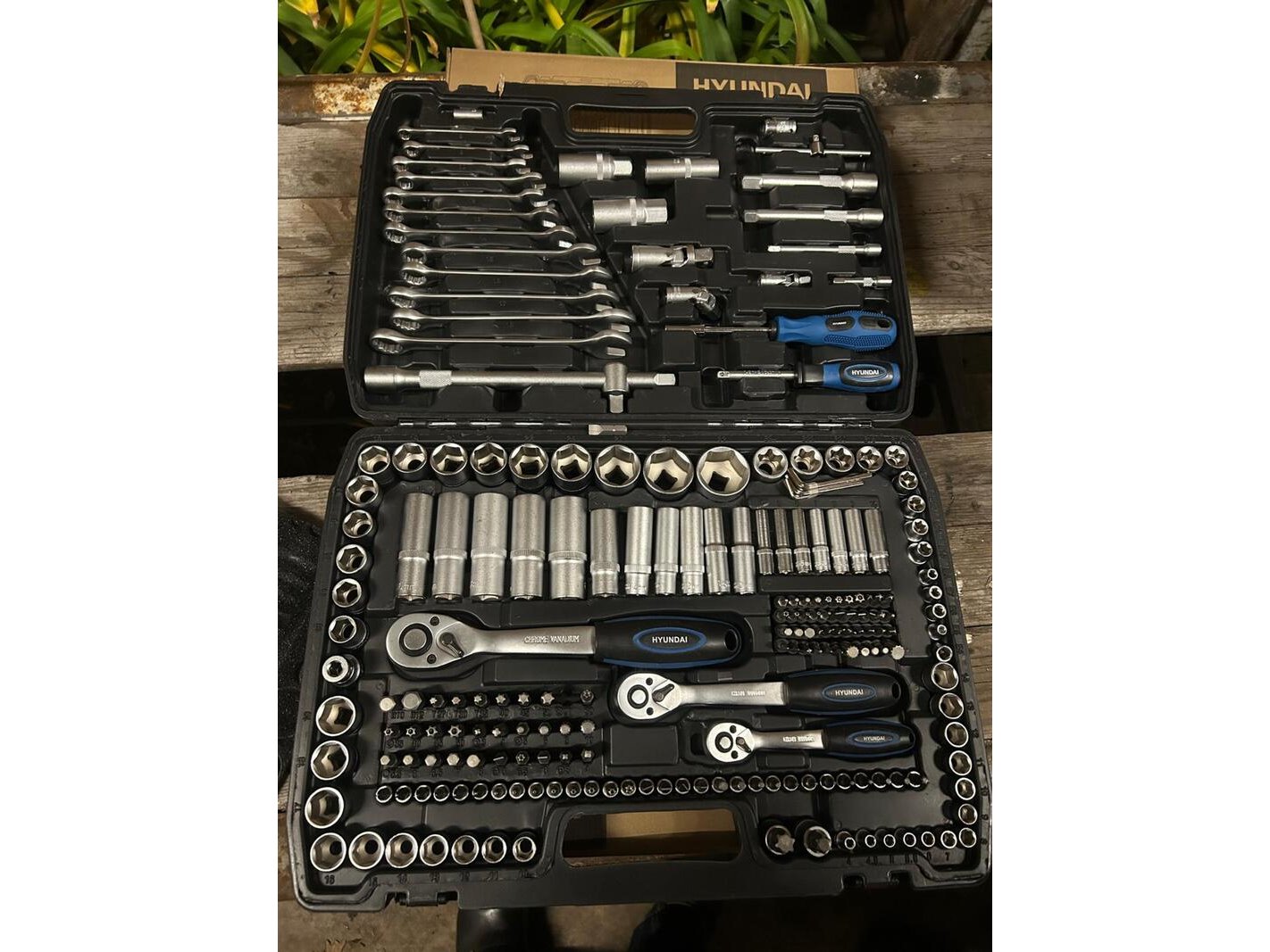 Merk: Hyundai Product: Doppen set 216-delig Materiaal: Ijzer BouwJaar: 2025 Conditie: Nieuw Specificaties: Breed scala aan maten en types gereedschappen voor veelzijdig gebruik. • Duurzaam ratelmechanisme met 72 tanden voor efficiëntie en precisie. • Handige opslag in een stevige kunststof koffer voor eenvoudig transport en organisatie. - Model: 59654 - EAN: 8718502596540 In de verpakking; - Combination wrench: 8-9-10-11-12-13-14-15-16-17-18-19 mm - Hex key wrench: H1.27-1.5-2-2.5-3-4-5 mm - 5/16”bit 30mm: SL6-6.5-8, PH3-4 ,PZ3-4, H5.5-6-6.5-7-8-10-12, M5-6-8-10,T27-30-35-40-45-50,T27H-T30H-T35H-T40H-T45H-T50H - Ratchet hadle: 72T - Extension bar: 2”, 4” - Bit coupler - Sliding T bar - Spanner handle - Universal joint - Socket: 4-4.5-5-5.5-6-7-8-9-10-11-12-13-14 mm - Deep socket: 4-5-6-7-8-9-10 mm - E socket: 4-5-6-7-8 mm - Bit socket: T8H-T9H-T10H-T15H-T20H-T25H-T27H-T30H,T8-9-10-15-20-25-27-30, PH0-1-2,PZ0-1-2, H3-4-5-6,SL4-5.5-6.5-7 - Bit Driver - Bit 25mm: H2-2.5-3-4-5-6-7,PH0-1-2-3,PZ0-1-2-3,T6-8-10,SL4-5.5-6.5-7,M5-6-8-10-12, T8H-T10H-T15H-T20H-T25H-T27H-T30H-T40H-T45H,SP4-6-8-10,TW1-2-3-4 - Ratchet hadle: 72T - Extension bar: 5” - Bit coupler: 8 mm - Universal joint - Socket: 10-11-12-13-14-15-16-17-18-19 mm - Deep socket: 10-11-12-13-14-15 mm - E socket: 10-11-12-14-16-18 mm - Plug spark: 21 mm - Ratchet hadle: 72T - Extension bar: 5”, 10” - Three way adaptor - Bit coupler: 8mm - Universal joint - Socket: 13,14,15,16,17,18,19,20,21,22,24,27,30,32 mm - Deep socket: 16-17-18-19-22 mm - E socket: 20-22-24 mm - Bit socket: T55-60 - Plug spark: 16, 21mm 1/4” 3/8” 1/2” CRV