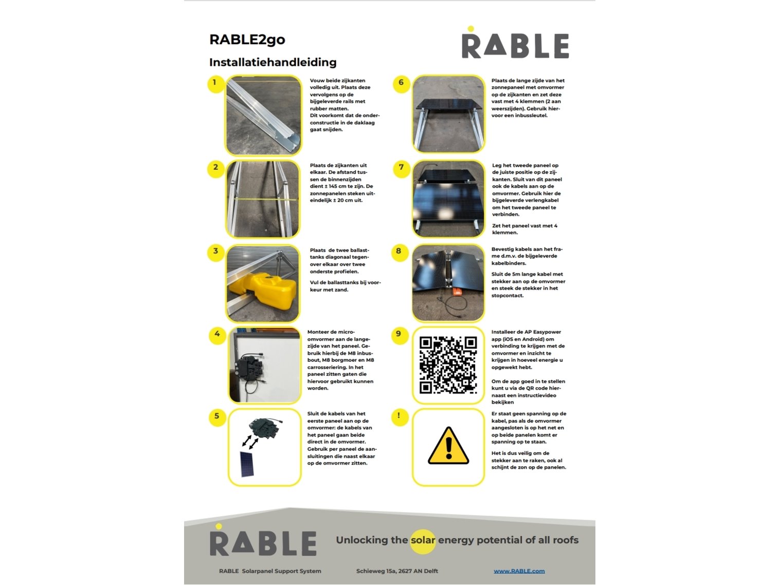Merk: RABLE Product: Stekkerklare zonnepanelen set Materiaal: Aluminium Afmeting: 270x173x36 BouwJaar: 2023 Conditie: Nieuw Specificaties: Stekkerklare zonnepanelen set (DIY) Met de RABLE2go begin je snel met het opwekken van je eigen stroom. Ontworpen voor mensen die wél willen verduurzamen, maar geen gedoe willen met ingewikkelde installaties. Ideaal als je weinig ruimte hebt en toch direct voordeel wilt. Met één RABLE2go kun je je jaarlijkse energieverbruik tot wel 30% verminderen (afhankelijk van je situatie). Geen installateur nodig en geen ingrijpende aanpassingen aan je meterkast. Voor installatie-instructies en veiligheidsinformatie: zie de installatiehandleiding op shop.rable.nl.