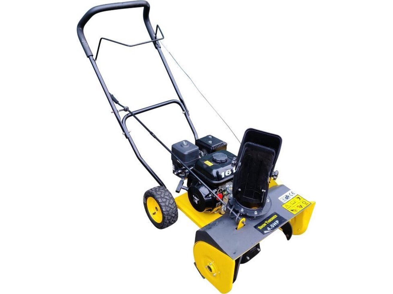 Merk: Snow thrower 4 pk Product: Sneeuwfrees Kleur: Geel Conditie: Nieuw Specificaties: Snow thrower 4 pk Motor 4 Pk 4 Takt Met CE Keurmerk Max werpafstand +/- 4 Meter Werprichting 190 graden draaibaar Hoogte instelling met glijblokken Werk breedte 52 Cm Max sneeuw dikte 30 Cm In doos moet gemonteerd worden Olie en benzine dienen te worden toegevoegd