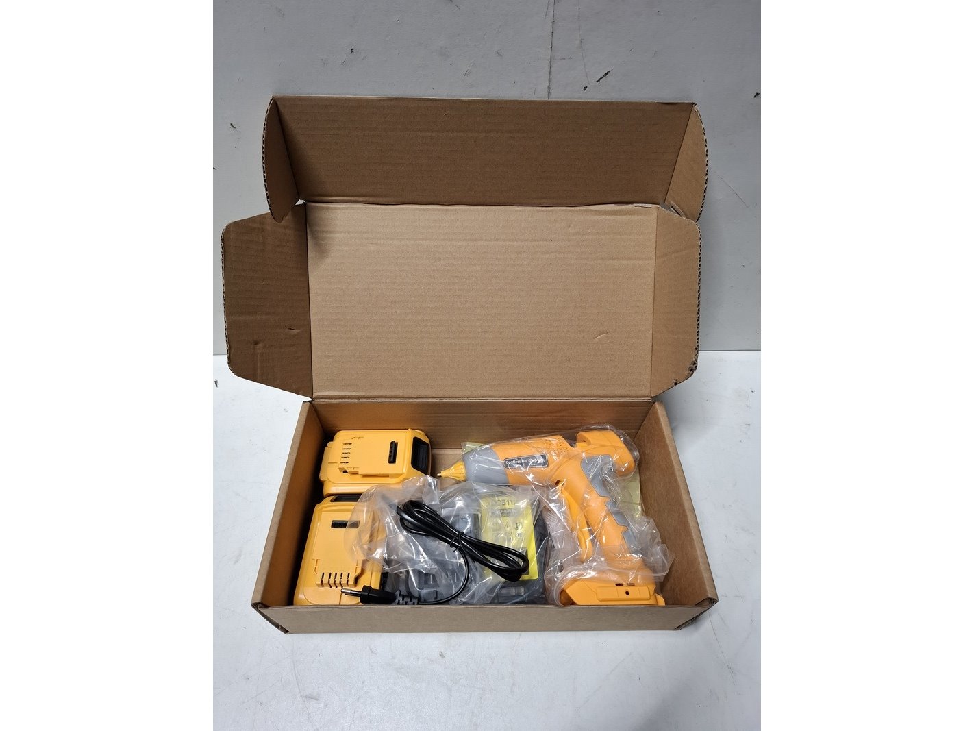 Merk: Sanderz Product: Hot glue melting gun op accu Kleur: Geel Specificaties: Inclusief: - 2x accu - 1x lader